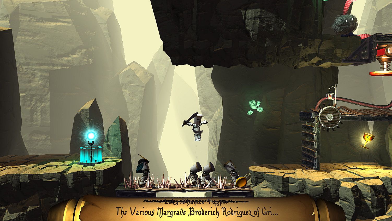 Can you find the Cup of Life wearing a horse head? On top of solving puzzles, you'll be able to unlock amusing hats and weapons. Your knights will spawn wearing silly hats, like beanies and berets, and wielding even sillier weapons, like dead fish and spatulas.