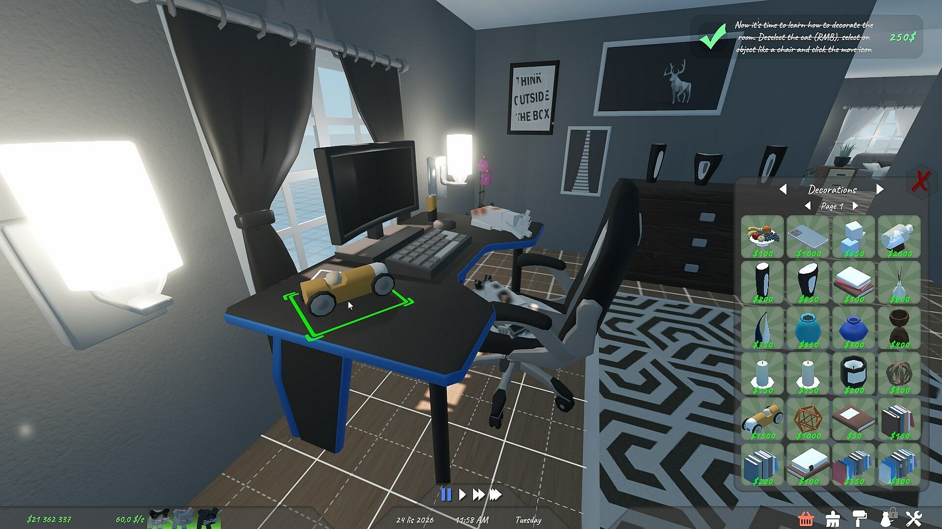 Challenges: Challenges are additional gameplay element to make sure you are never bored while playing the game. Make your cat walk through the room without touching the floor or make it somehow touch the ceiling.