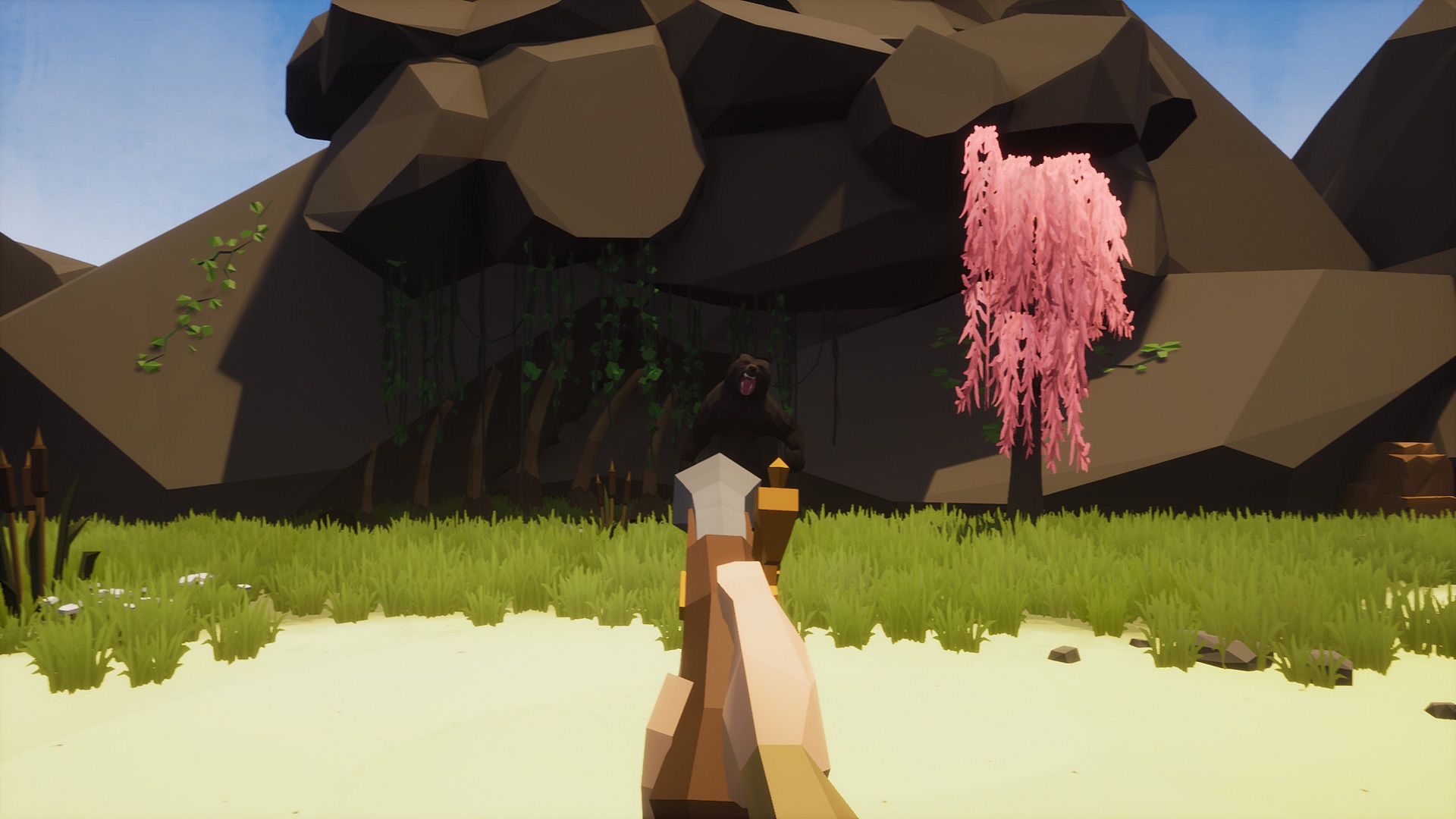 Axe, Pickaxe, Spear, Torch, cutlass,firegun and so much more can all be crafted through an interactive crafting menu.