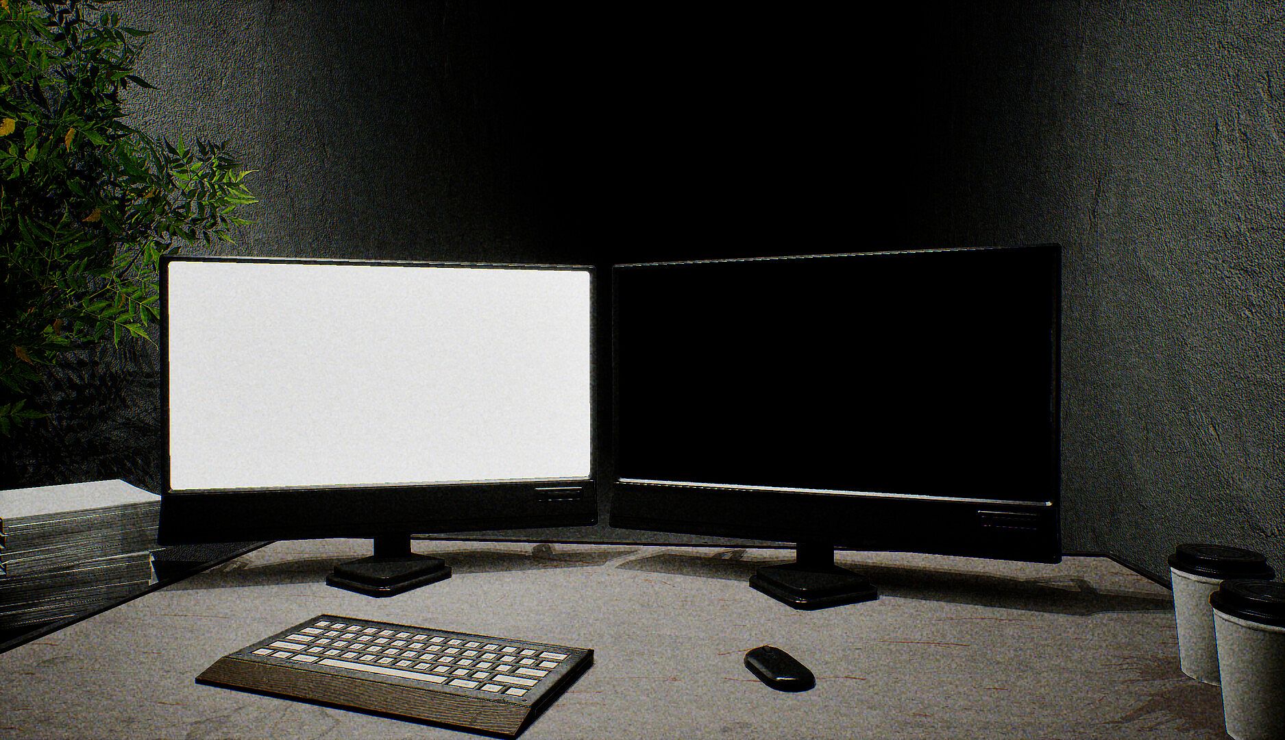 Being at your workplace, you suddenly pay attention to the visceral silence surrounding you. Perhaps it's because the process of downloading a familiar resource has taken an unexpectedly long time and you haven't noticed how your surroundings have changed. When you try to get up from your chair, you realise that you are stuck to it, and all you can do is look around frantically. Soon you can feel the disturbing metamorphosis: the monitors broadcast strange things, the shadows around you thicken, and the sense of alien presence intensifies.