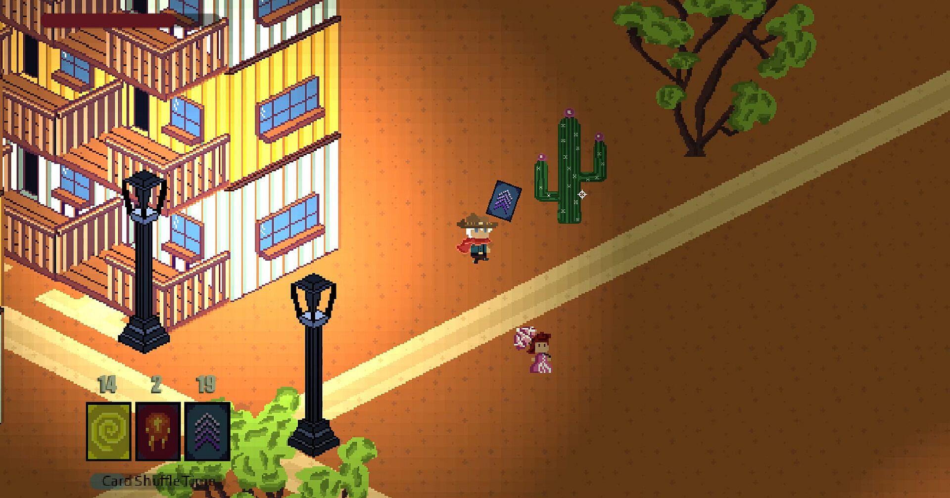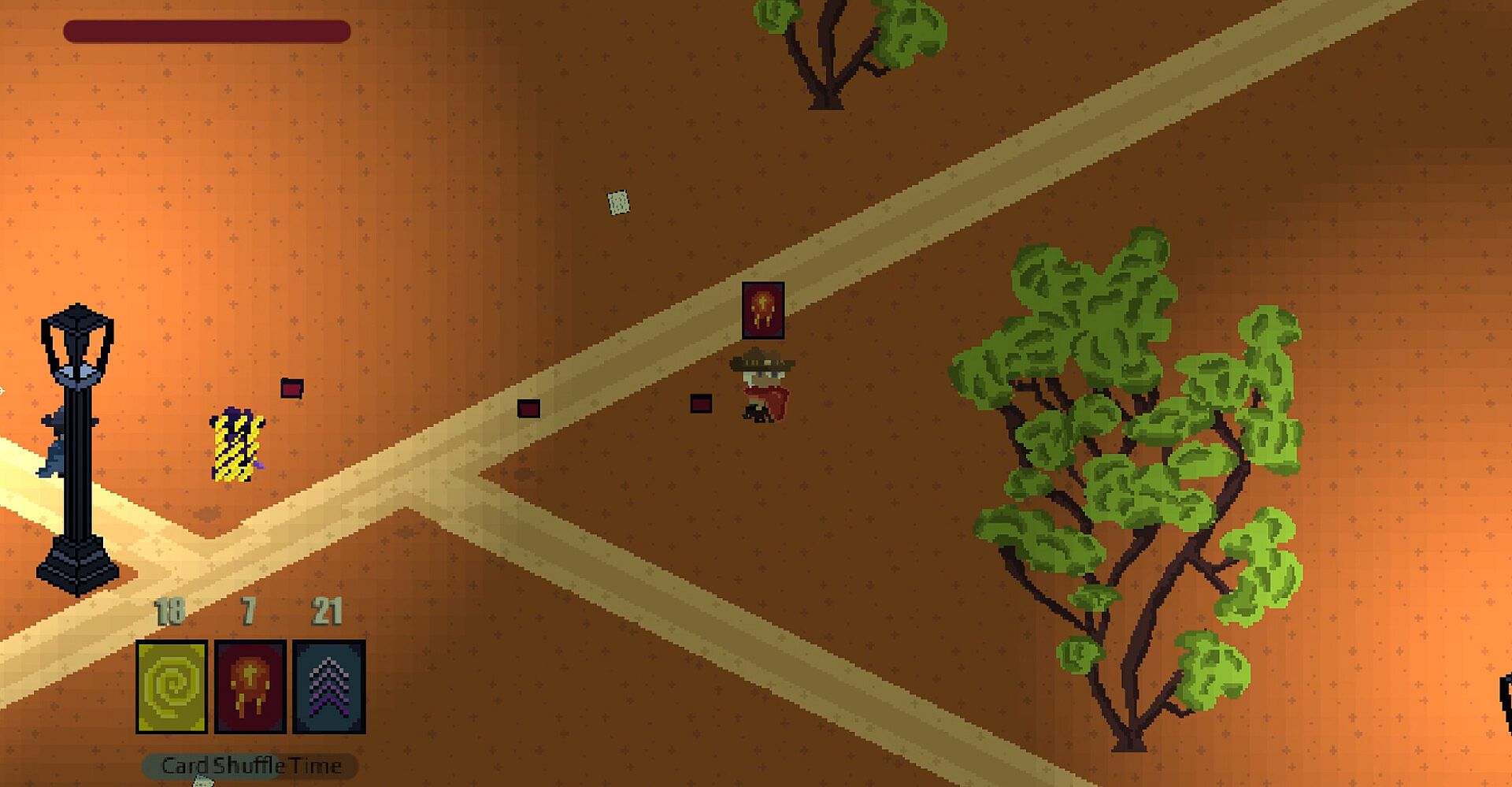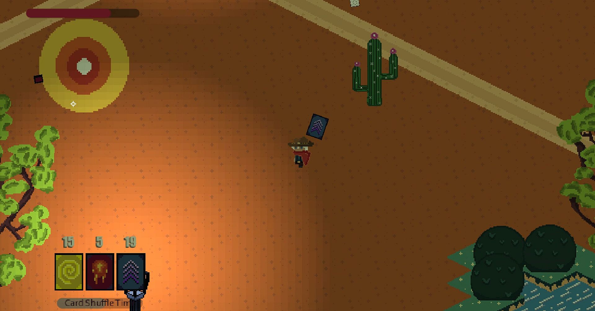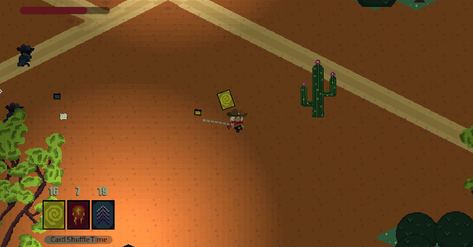 Weave selected cards of your choice from your hand towards any desperados that have the gumption to stand in your way.
