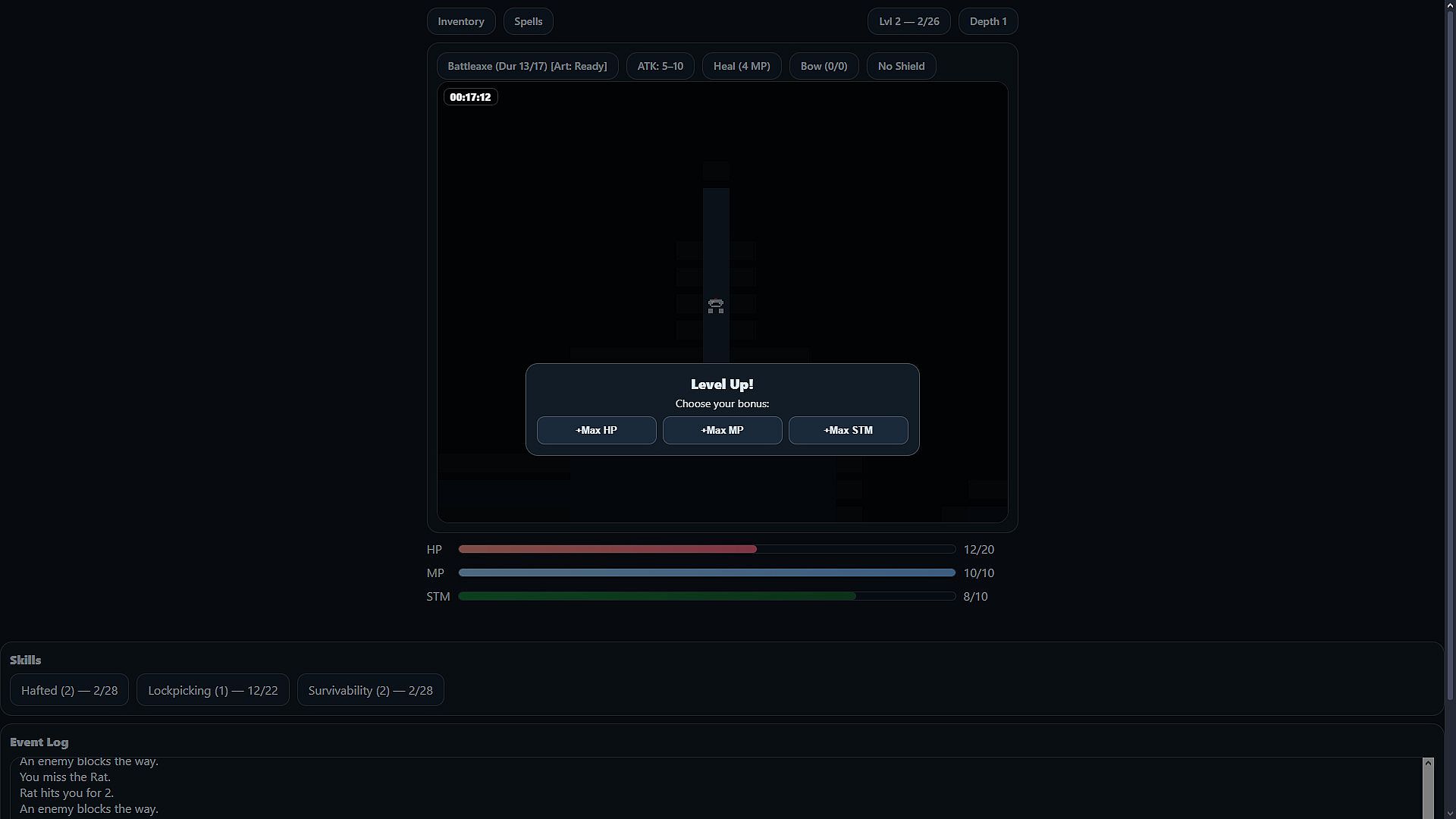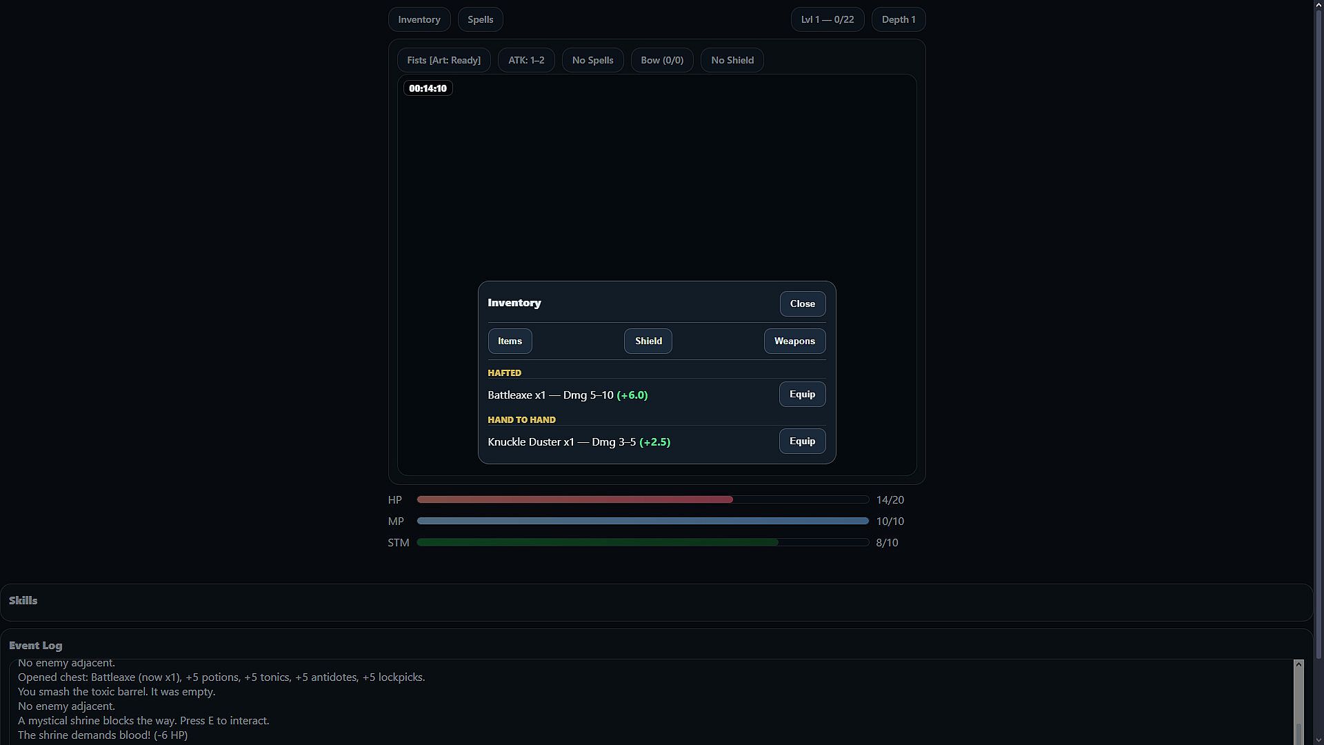 Level up weapon specific weapon and other skills to improve your odds of survival in the dungeon.