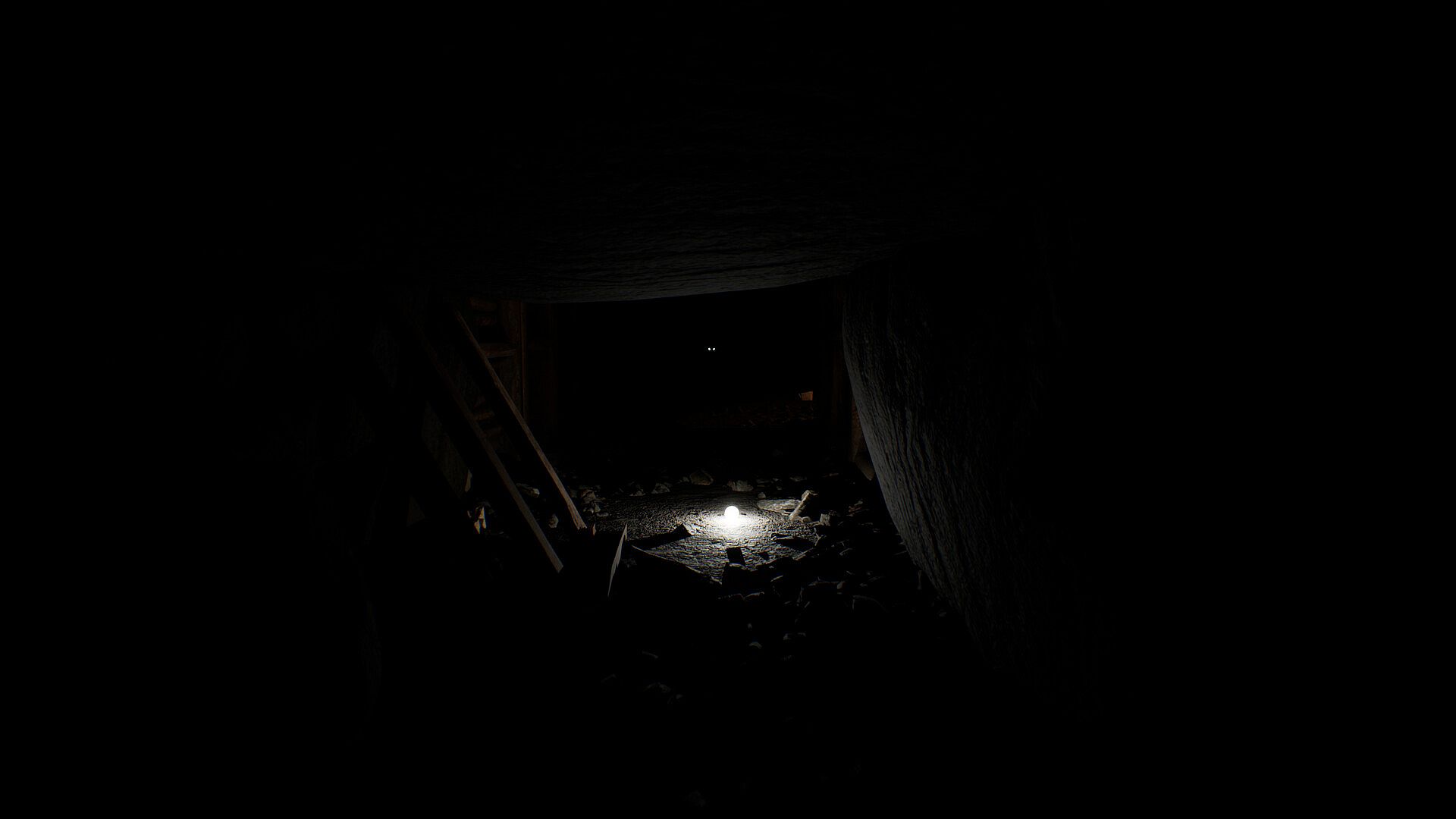 The mine swallows light, leaving you vulnerable. Your only means of navigating the void are glowing orbs of light that you can throw into the darkness, illuminating the path ahead and revealing what lurks in the shadows.