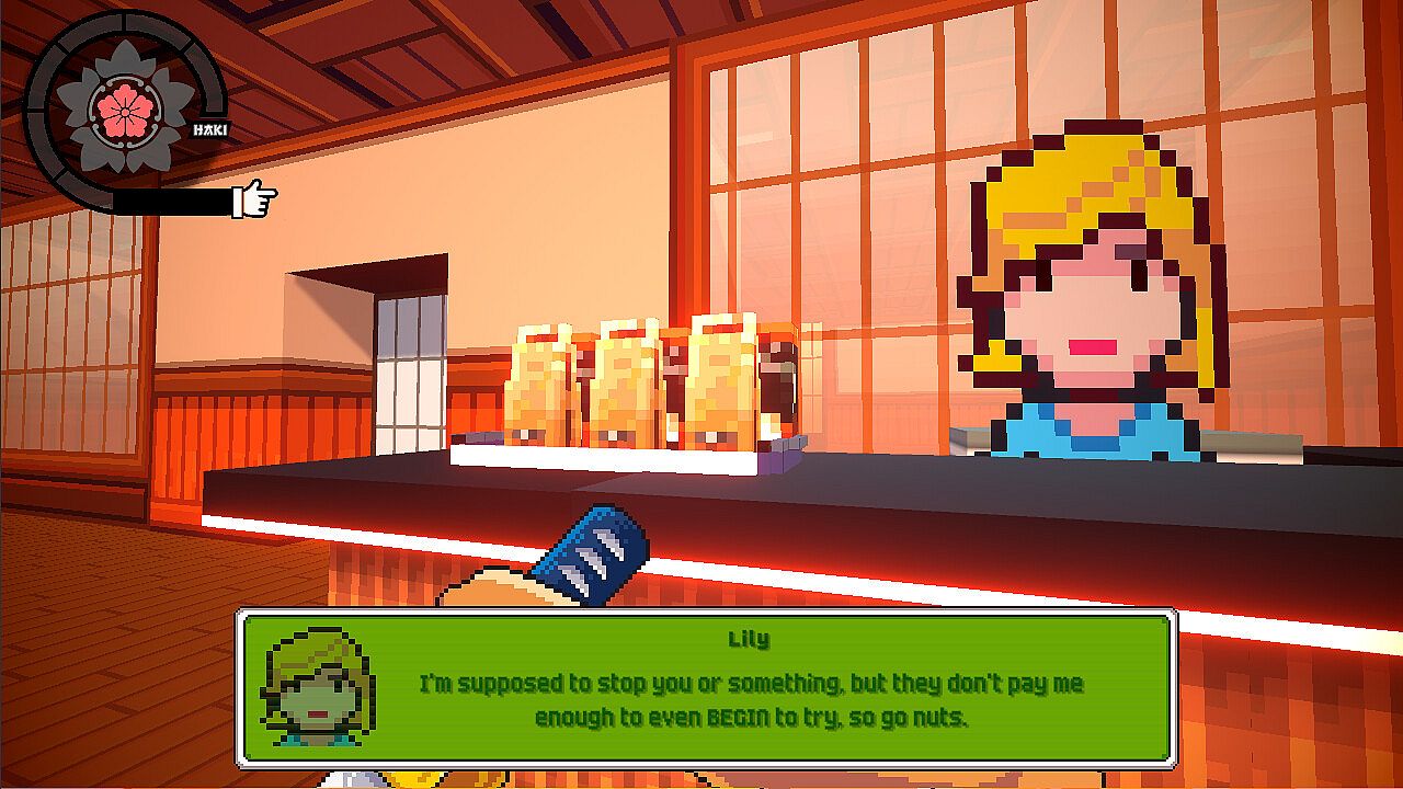 Lightning Katana delivers fast-paced action FPS gameplay built around hype parries, hyper combos, and nonstop movement. Players slash, shoot, parry, and dodge roll through Neo-Nippon's Yakuza stronghold to avenge their pet Dogsuke and battle the Ryujin Ichizoku hit squad. Perfect parries recover health amid quick enemy takedowns, while defeating empowered foes grants temporary abilities like lightning bolts or wind rides for slicing attacks. Hand-crafted levels mix mechanics such as timed ability chains or kicking molotovs into enemies' faces. Chain kills for S, SS, and P ranks to earn Schmunny for new levels or Bones for hub decorations in Gauntlet Mode. Indie action fans who crave precise, high-stakes combat will master its stylish demands.