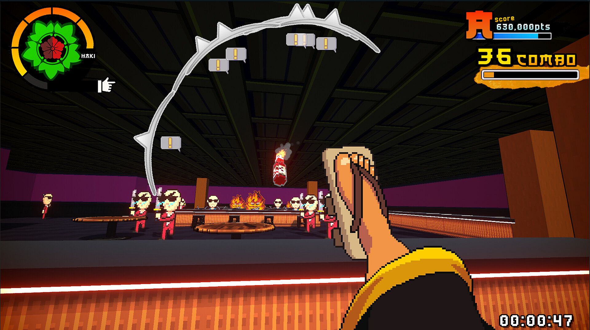 Each level is hand-crafted with a different mechanic or idea in mind, be it slicing through as fast as you can with an array of well timed abilities, or kicking molotovs into your enemies' faces. See if you can master them all for the illustrious P-Rank!