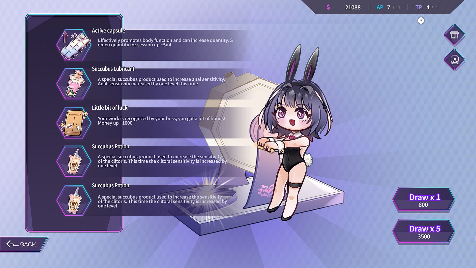 This is a relaxing, daily life-style simulation game. Go to work to earn money, go on dates on the weekends, and interact with Lilim using a limited amount of daily action points.