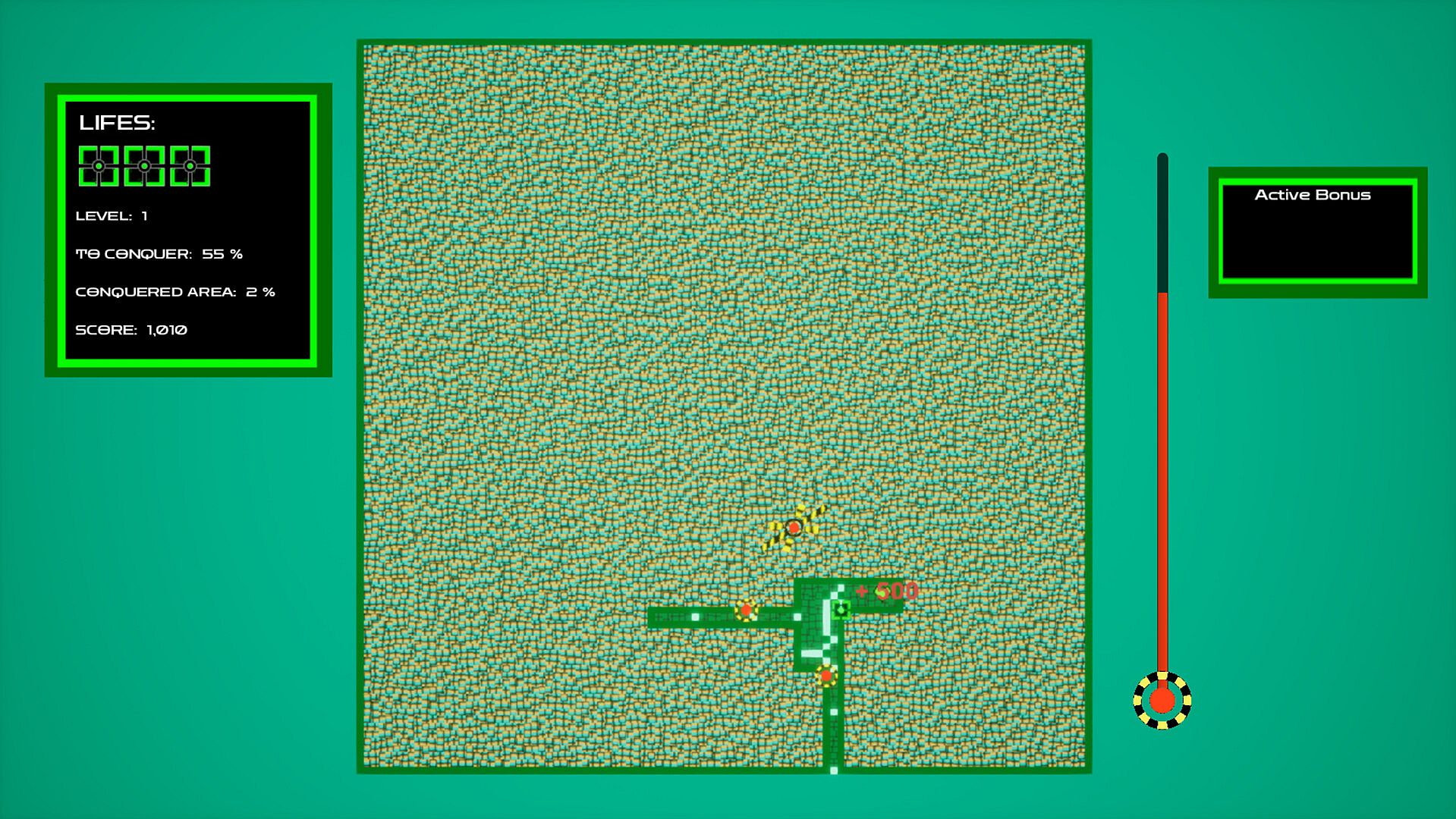 In Grid Wars, your mission is simple: capture the area while evading the aliens’ ships trying to destroy you. Acquire upgrades to temporarily give you bonuses, get as many points as possible and achieve victory by conquering the required amount of area.