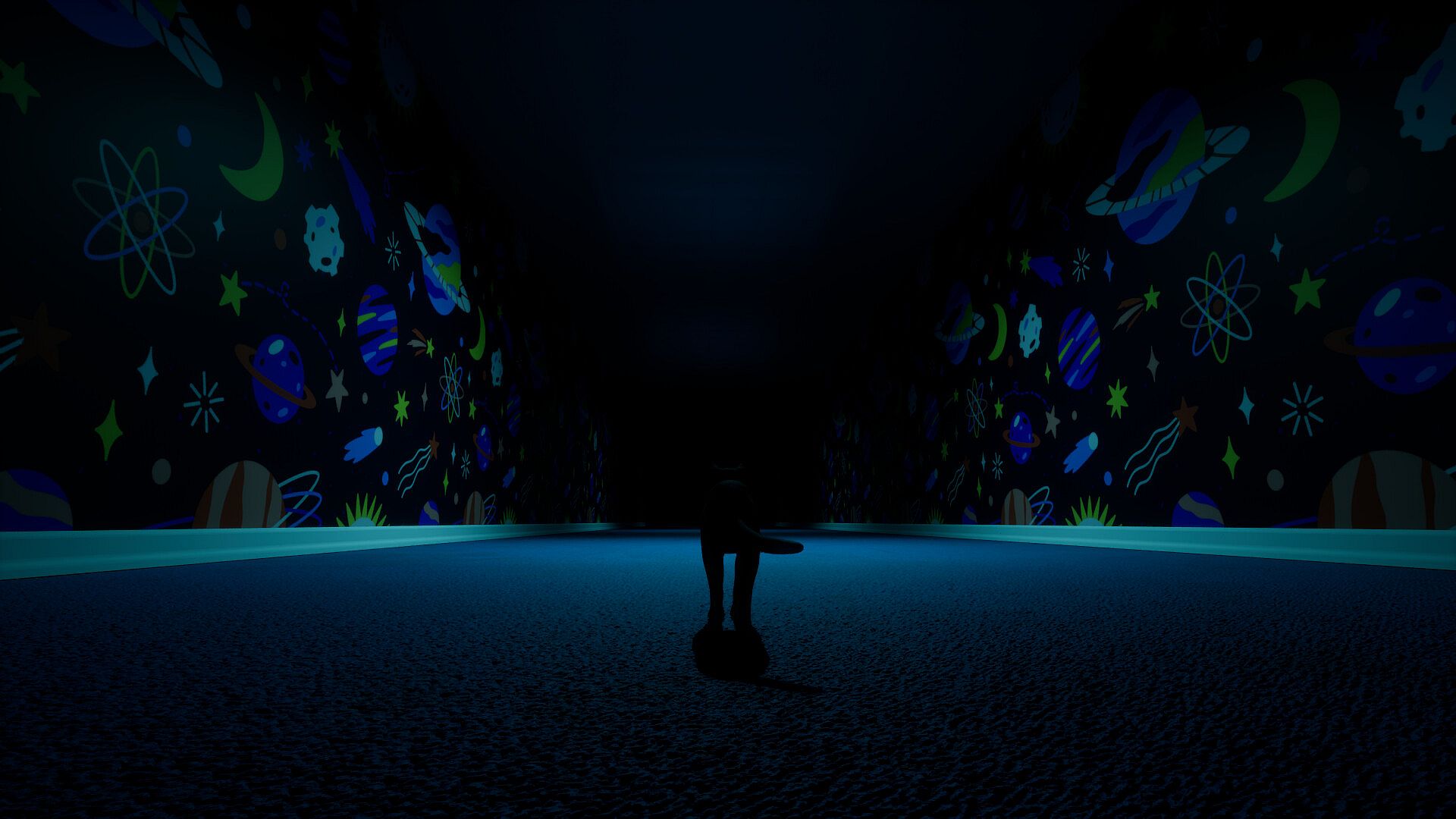 A cat woke up in a cold, inorganic tiled room, with nothing to rely on around it, and began to wander in search of an exit in the endless empty liminal space.