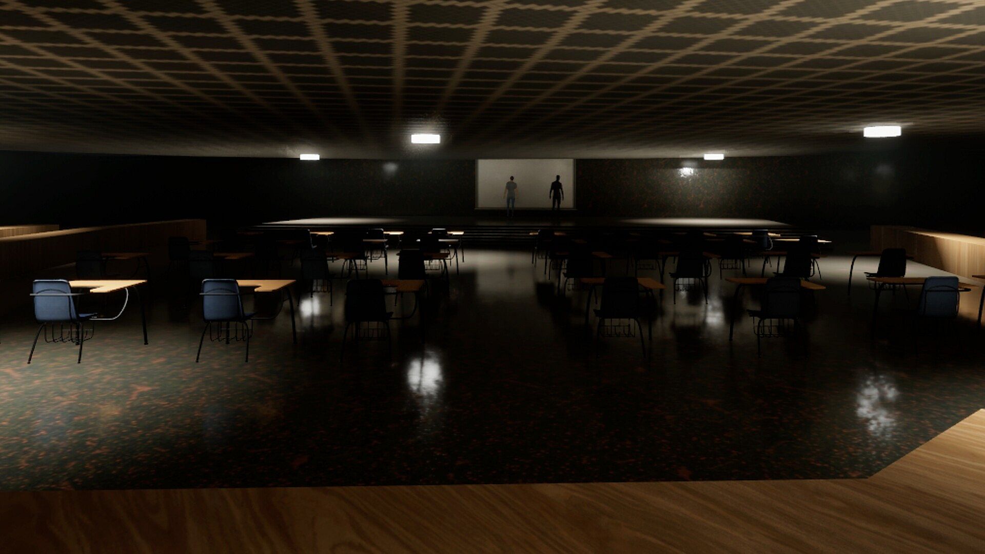 SOUNDTRACK: Just the sound of distant water drip's and footstep echo's are heard through and through. The project uses AI generated sound for hardly twenty seconds at the end of the gameplay.