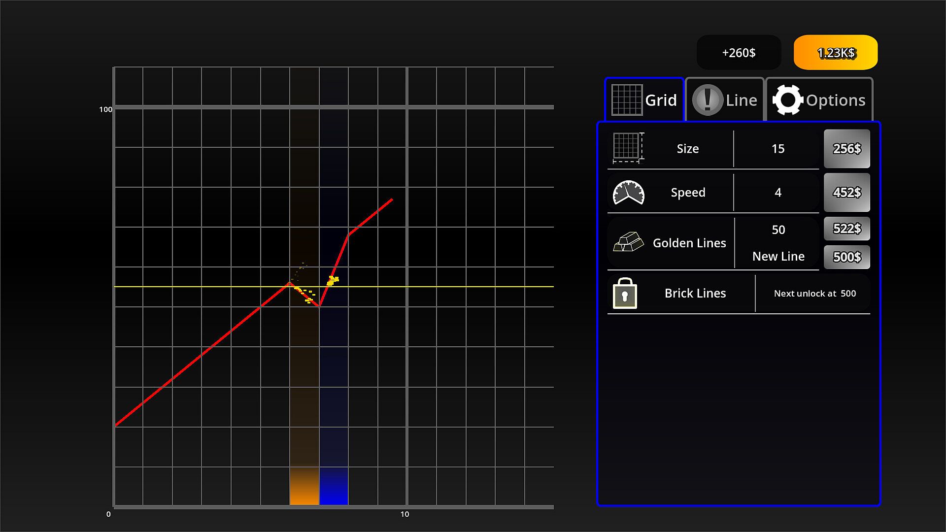 Line Goes UP is an idle game where you watch a line go up. Even though it starts simple enough, soon you will unlock new lines, tools and challenges to complete, that will allow you to reach unmatched heights. Will you uncover all the misteries of the grid?