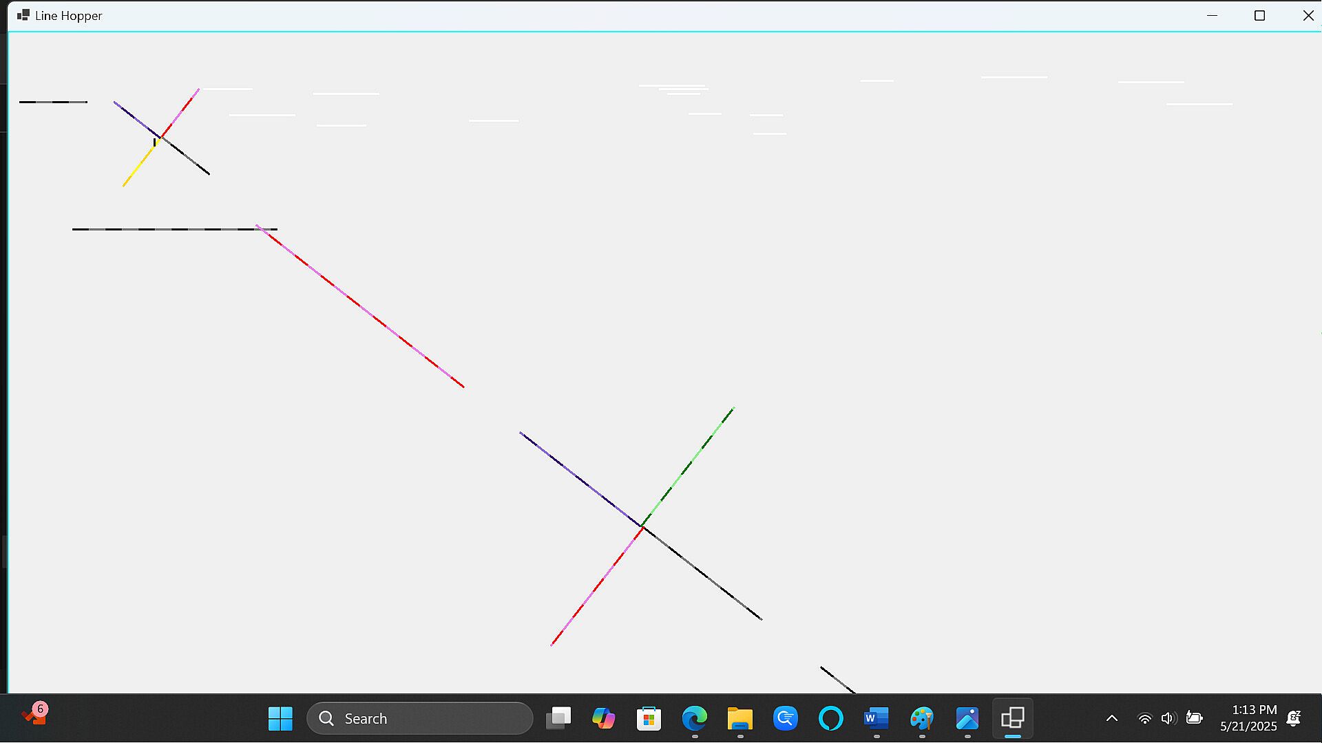Welcome to Line Hopper! In this unique game (the first 1st-person 2D platformer ever created), you get to see what a two-dimensional world composed of multicolored lines looks like from the perspective of the main character, Linus. Whereas you and I see our 3D world as a series of 2D images, Linus sees his 2D world in one dimension: as a single vertical line! Piecing together what is going on from his vantage point is challenging at first, but once you've gotten used to it, you'll be surprised how much you are able to see!