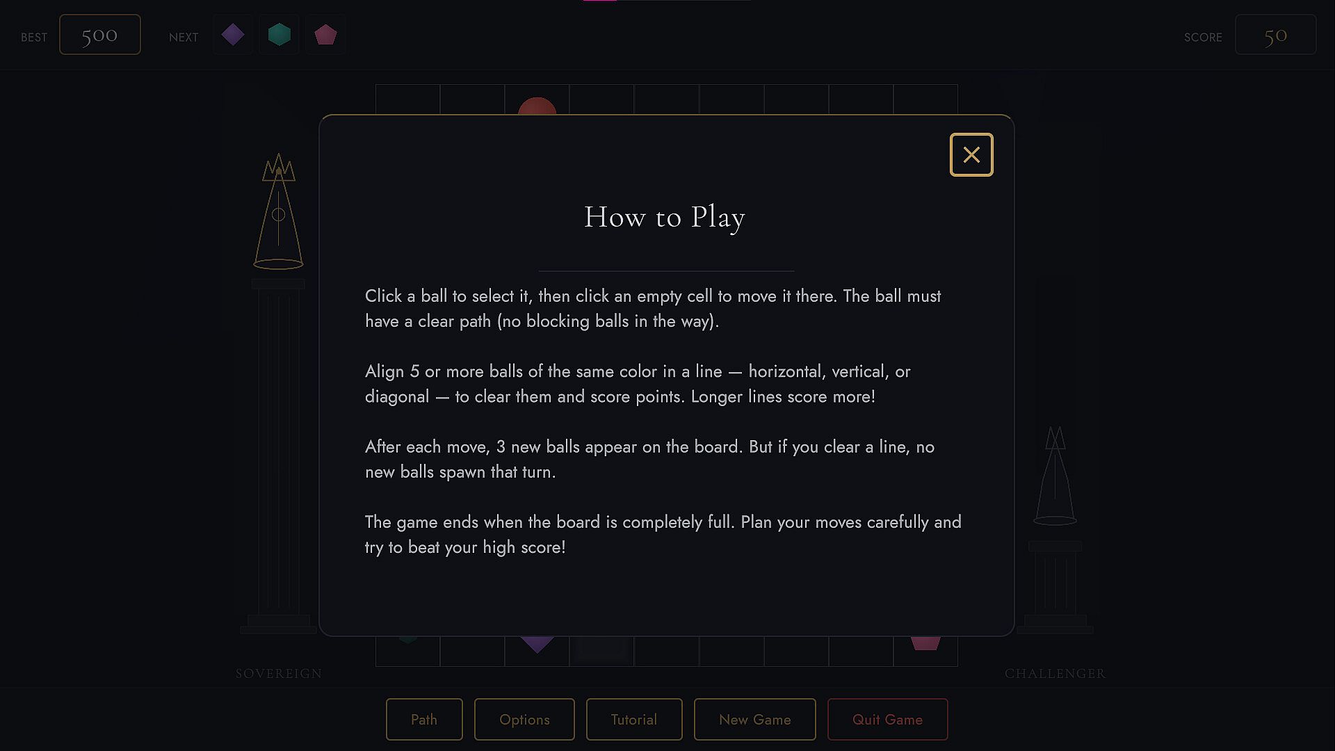 Lines Relined is modern remake of the classic puzzle game Lines, the timeless puzzle where strategy meets simplicity.