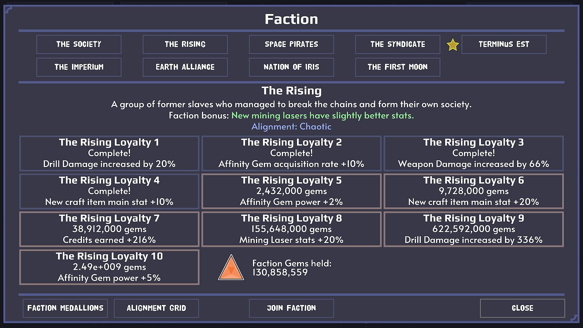 • Join a faction, earn faction rewards, craft faction emblems, and find a place on the alignment grid