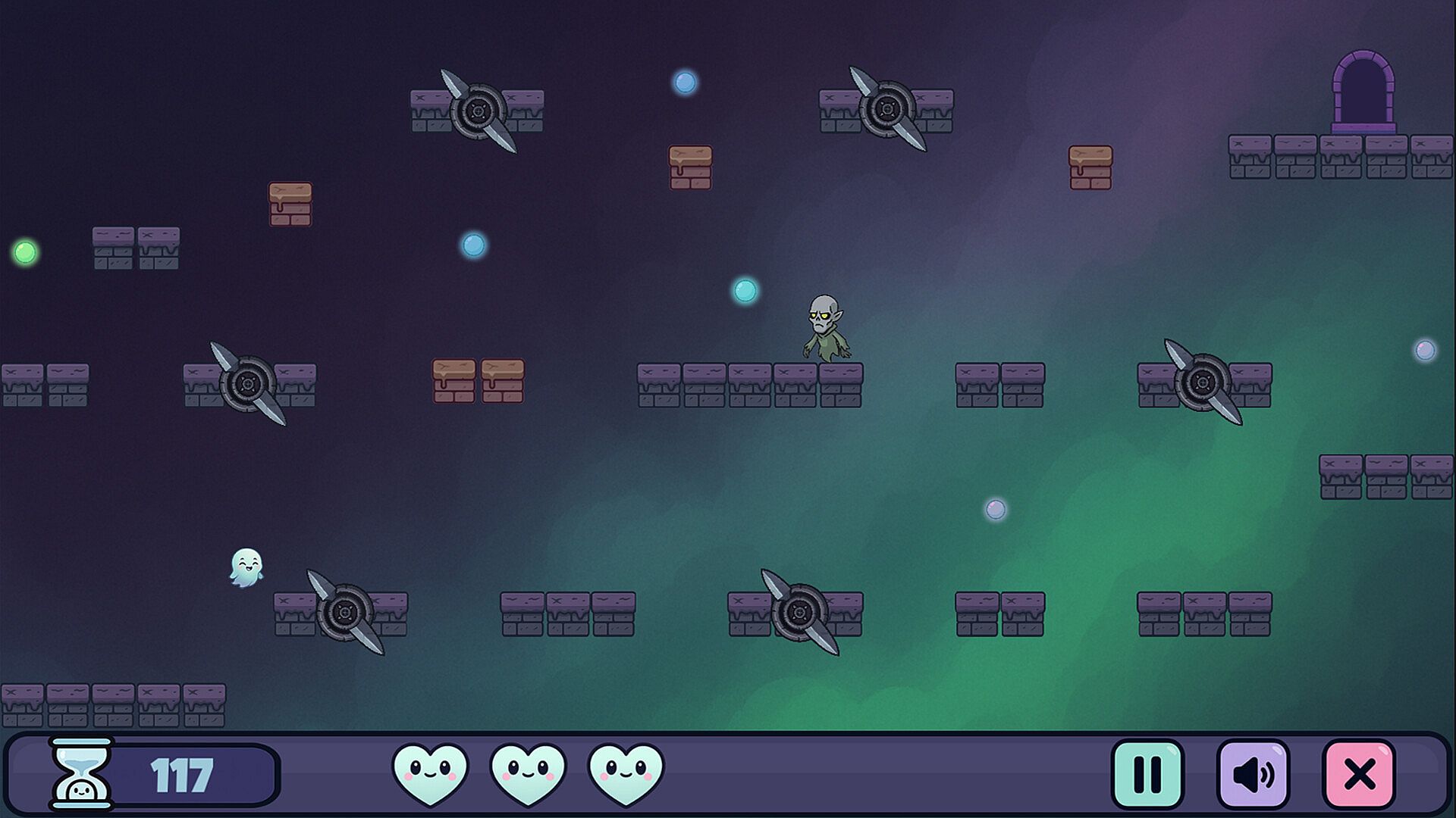 Each orb holds a trapped friend. Navigate single-screen chambers filled with hazards, collect every orb, and reach the exit before time runs out. Some levels demand speed. Others demand patience. All of them demand precision.