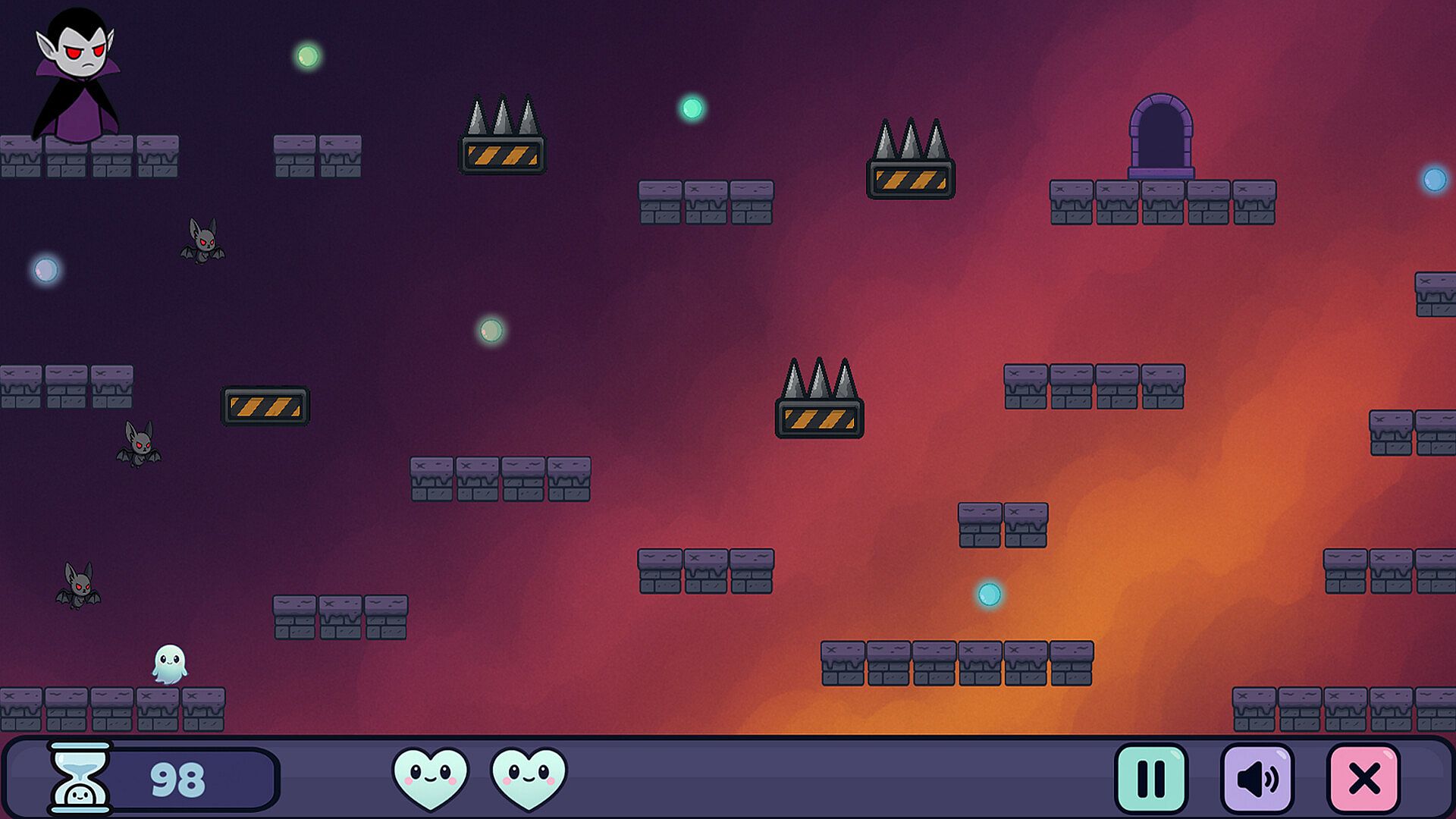 • 40 Hand-Crafted Levels — Each chamber is a unique puzzle of platforms, timing, and danger.