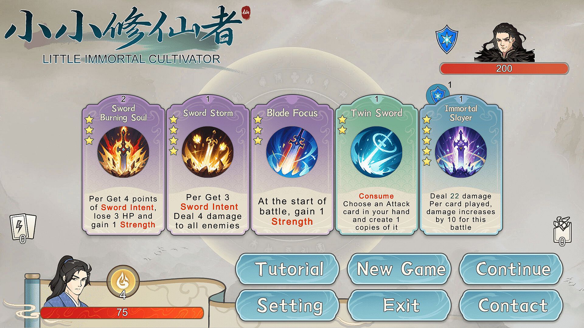 "Little Immortal Cultivator" is a Roguelike game that combines the theme of cultivation with deck building. Here, you will play the role of a cultivator who has just entered the world of cultivation. You will continue to fight, practice, and break through in the mysterious "Demon Locking Tower" and embark on the road to heaven!