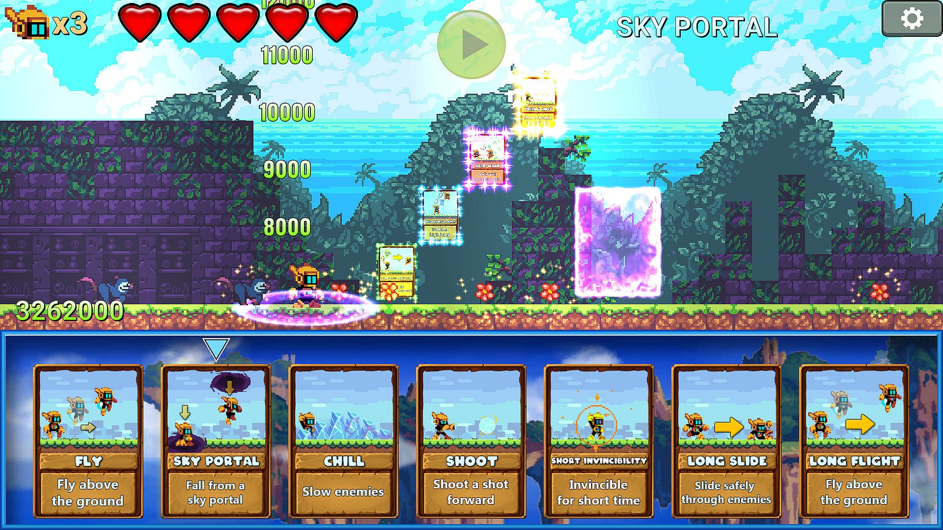 Play this strange little idea that combines turn-based planning with old-school 2D side-scrolling. I would call this game an experimental strategy game. Build a deck and get a hand of cards. Arrange those cards in the order that you want your little robot to follow. Press play and watch your little obedient robot advance through the stage.