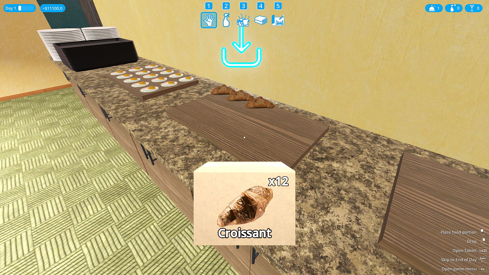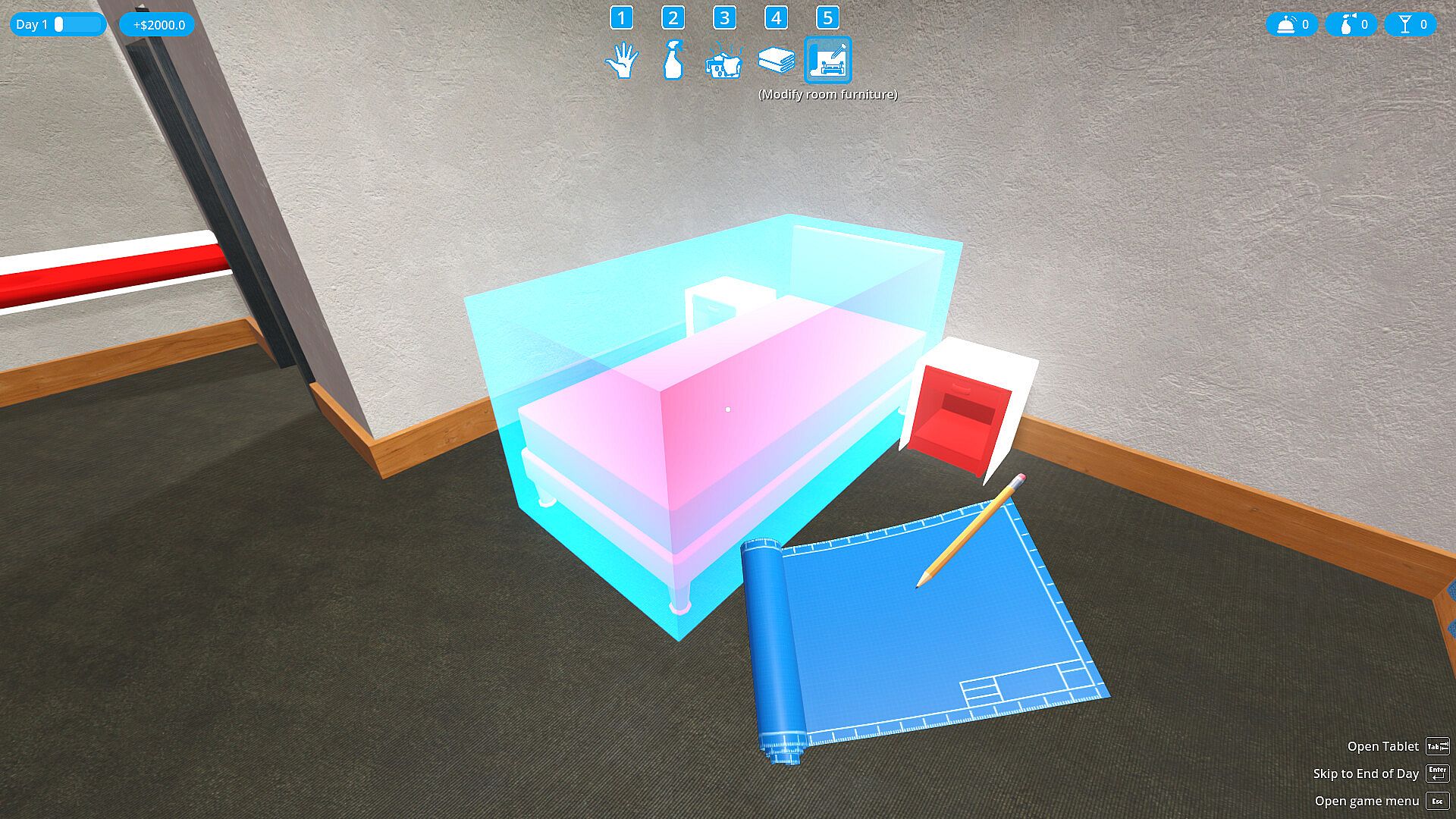 You start by renovating and customize the customer's room furniture to your taste, then the first customers will start appearing at the reception.