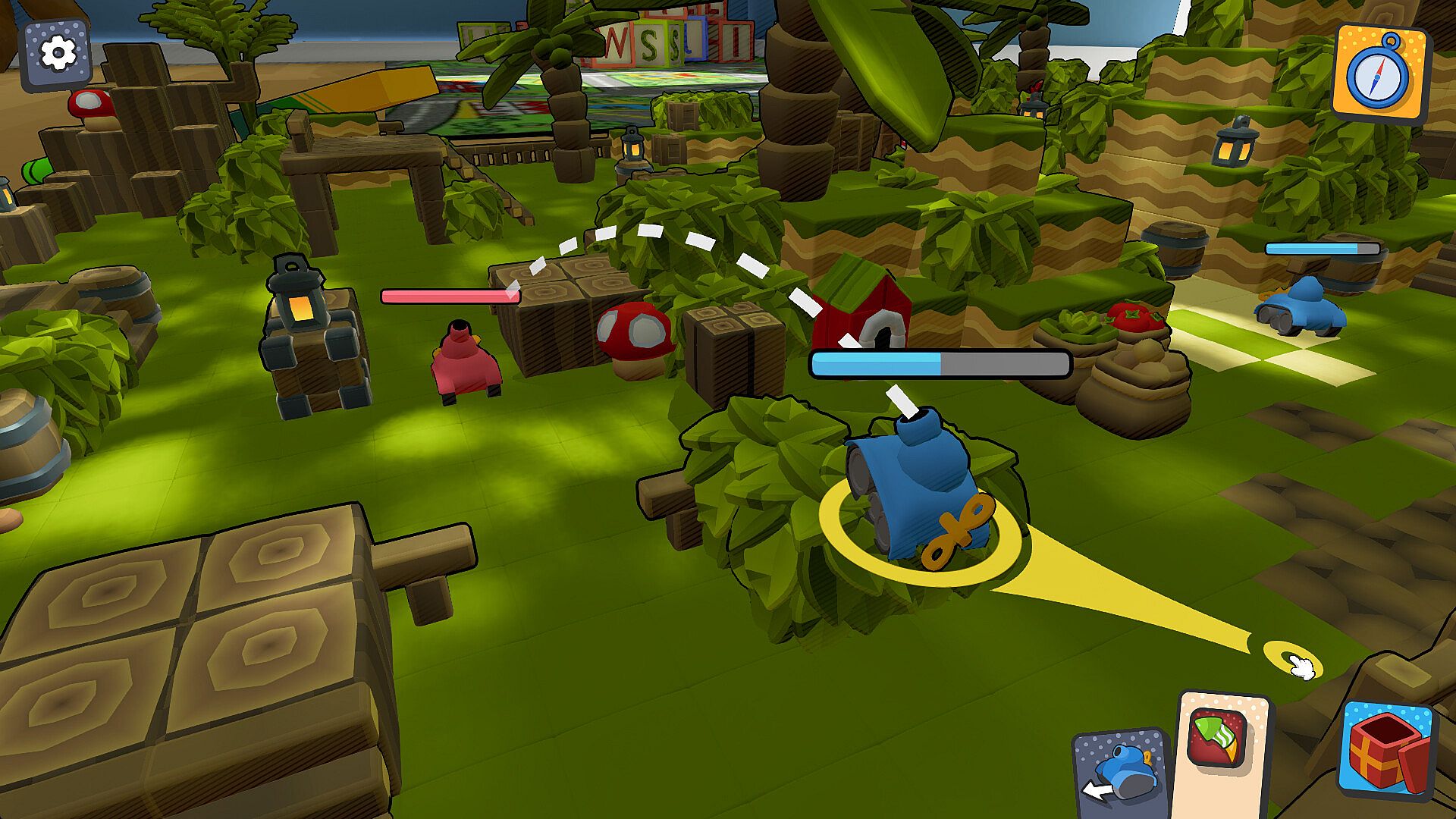 Battles come to life among toys, blocks, and familiar objects. The lighthearted atmosphere makes the game accessible to all kinds of players.
