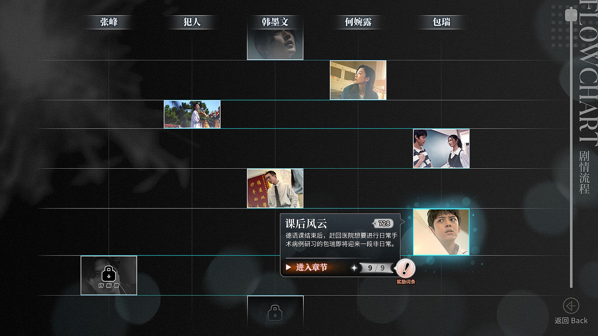 我们并没有把这部作品叫做文字冒险游戏,而是将其定位为视觉小说,是考虑到它按照一定的顺序从头到尾笔直地叙述了宜清市发生的故事。取选项分支而代之的是,作品的词条系统并非单纯客观的介绍说明,而是更为主观的感想与随笔,可以算作作者与读者之间一种另类的交流。这些词条的收集方式不只有点击对话中的关键词一种,有些时候也会隐藏在画面中的某个物件上等待点击解锁,而还有一部分词条则只有在解锁了所有前期词条后才会被连锁解锁,算是为阅读增添了一些别样乐趣。