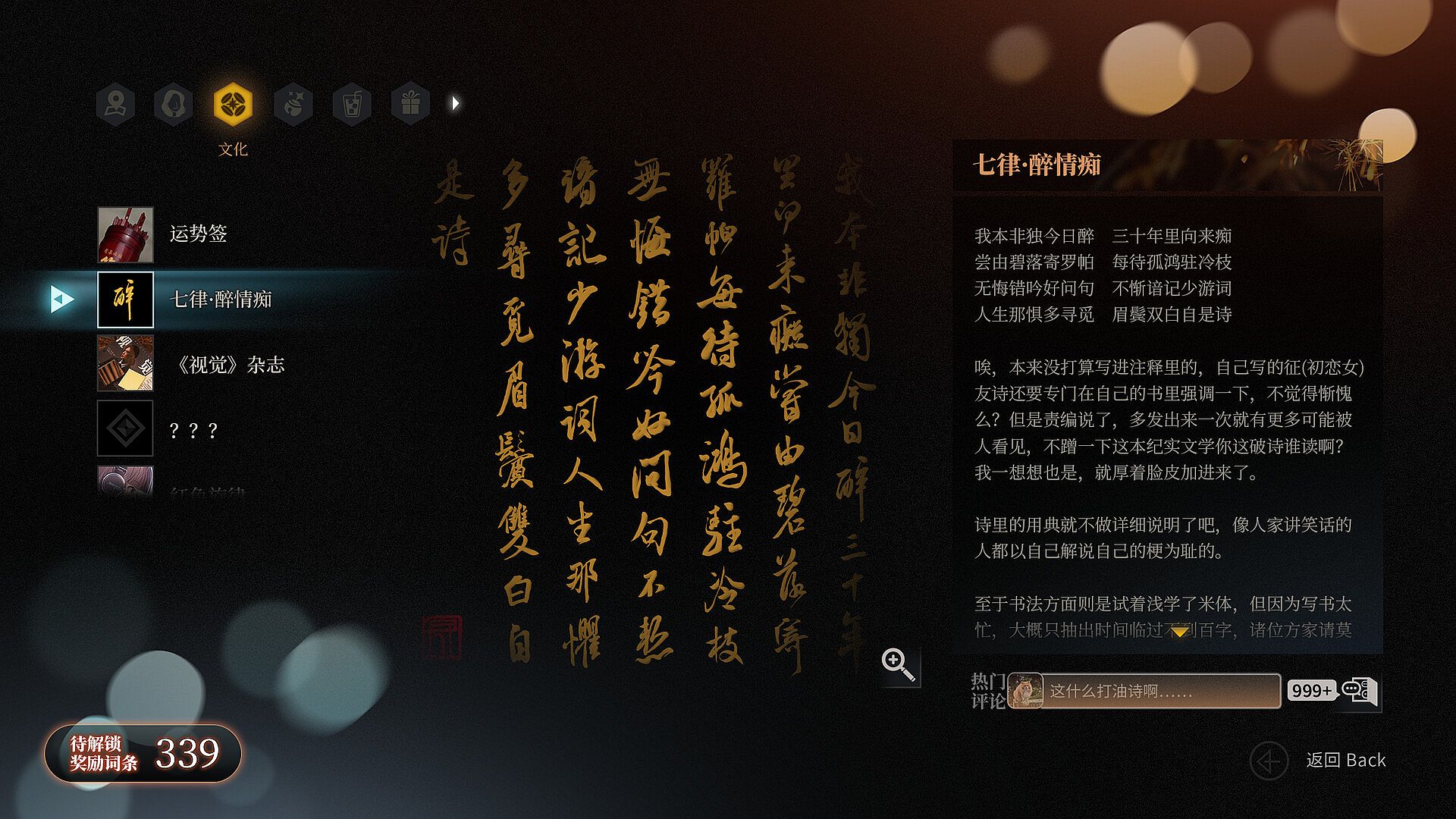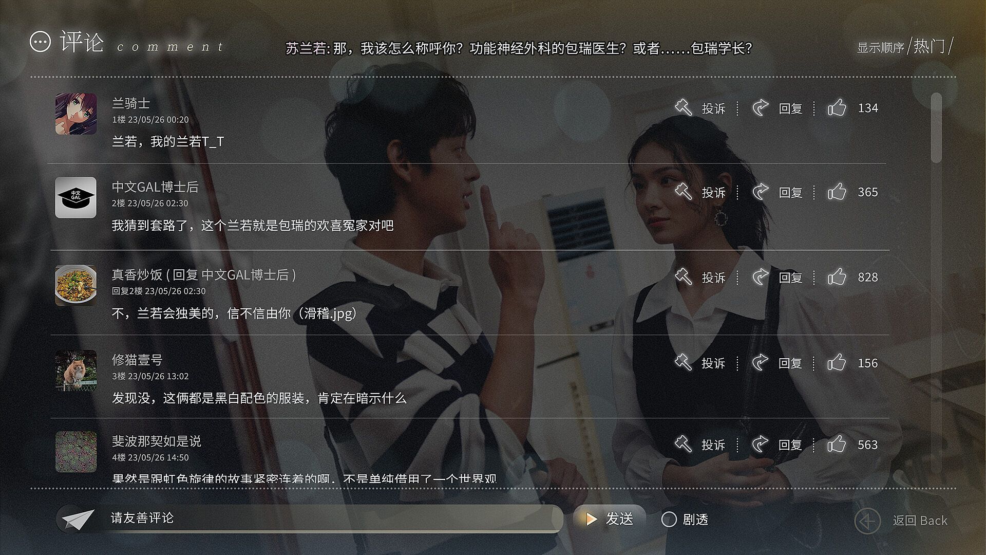 除此之外,本作还装载了弹幕/评论系统,无论是针对每句台词,还是角色、词条,都可以留言讨论,希望这样的系统可以让阅读这个故事的乐趣倍增。