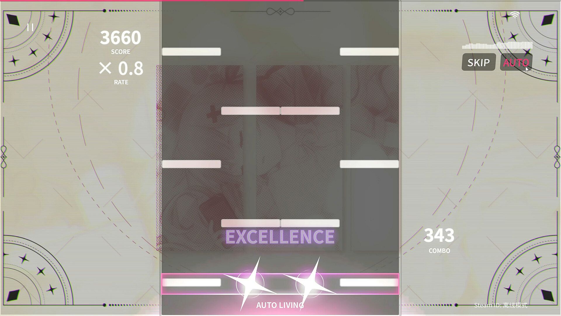 Classic 4-lane falling-note gameplay that dances with the beat; selectable difficulties let newcomers grow while veterans push limits.
