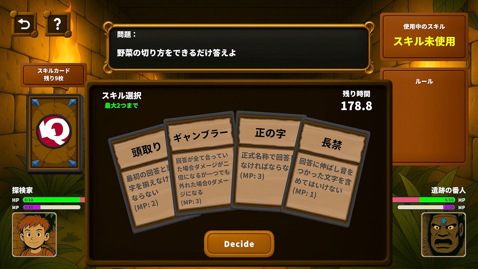 Use your skill cards and knowledge to outsmart an AI opponent.