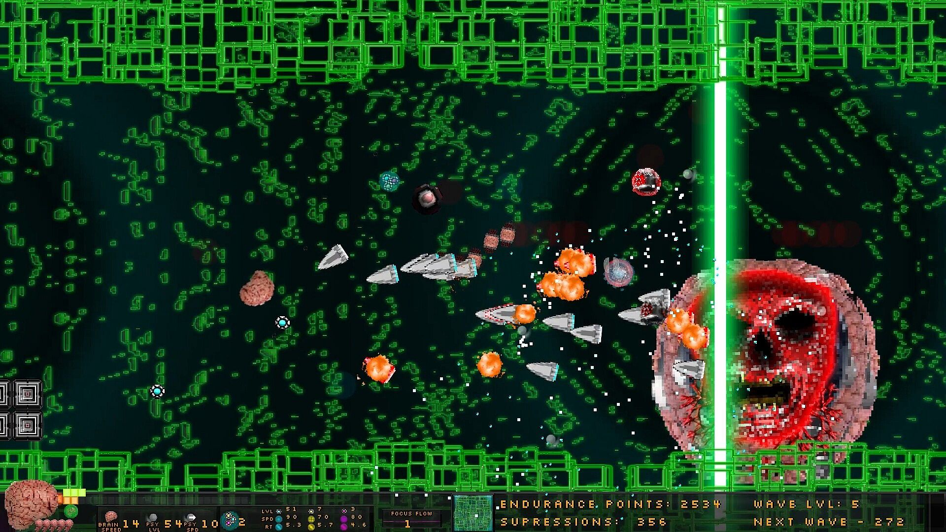 Shoot psychic orbs, collect useful thoughts, upgrade your Probe with speed, maneuverability, satellites, resistance and suppress negative thoughts in this Brain centric, procedurally generated bullet hell shoot 'em up.