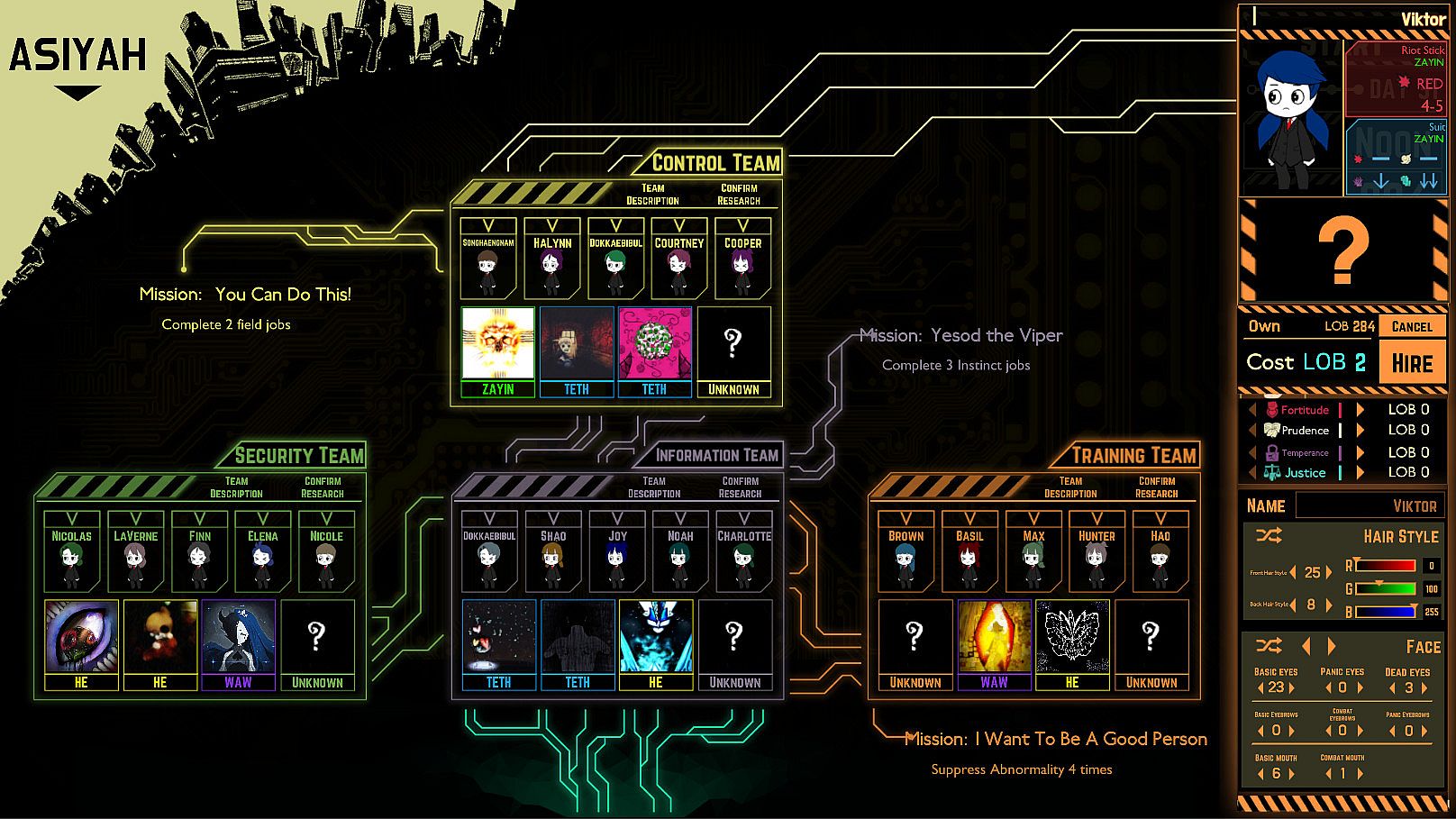 You will be playing as the Manager of Lobotomy Corporation, a company in which such creatures are contained and managed. Order your employees to perform work with and on the creatures and watch the results expectantly. Gather energy produced by the monsters and fulfill the quota each day, expand the facility, and manage even more strange beings. In this game, the player will face an ever-present sense of tension and dread as they progress through each day.