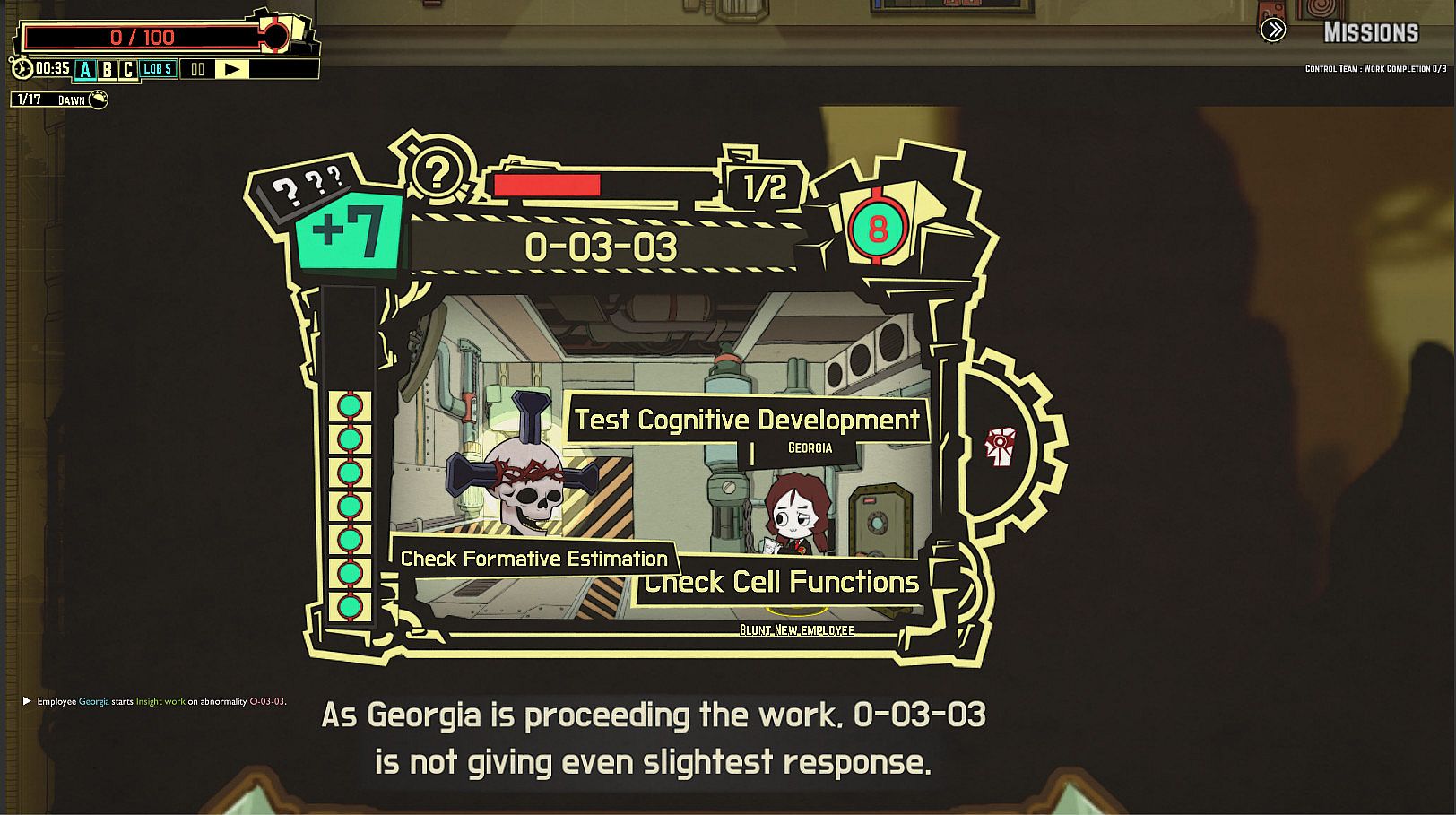 Once a day of managing Abnormalities and producing energy ends, the story segment will follow right afterward.