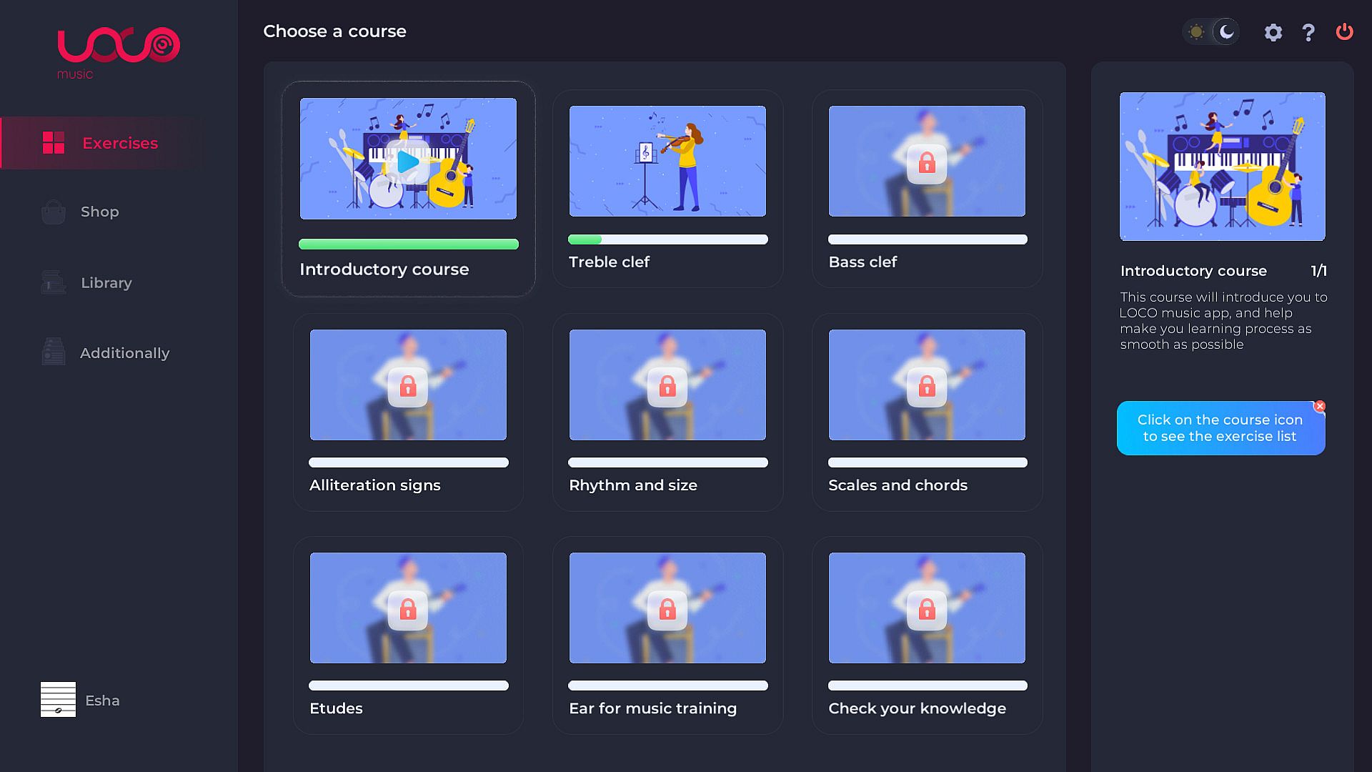 LOCO music app includes 3 sections with 9 courses.