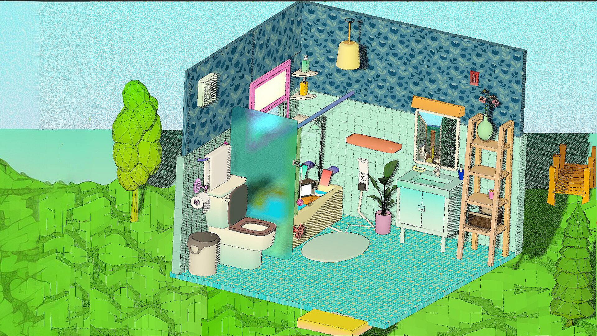 “Lofton Oasis” is a cartoon-style cleaning game full of messy, doodle-like physics and playful interactions.