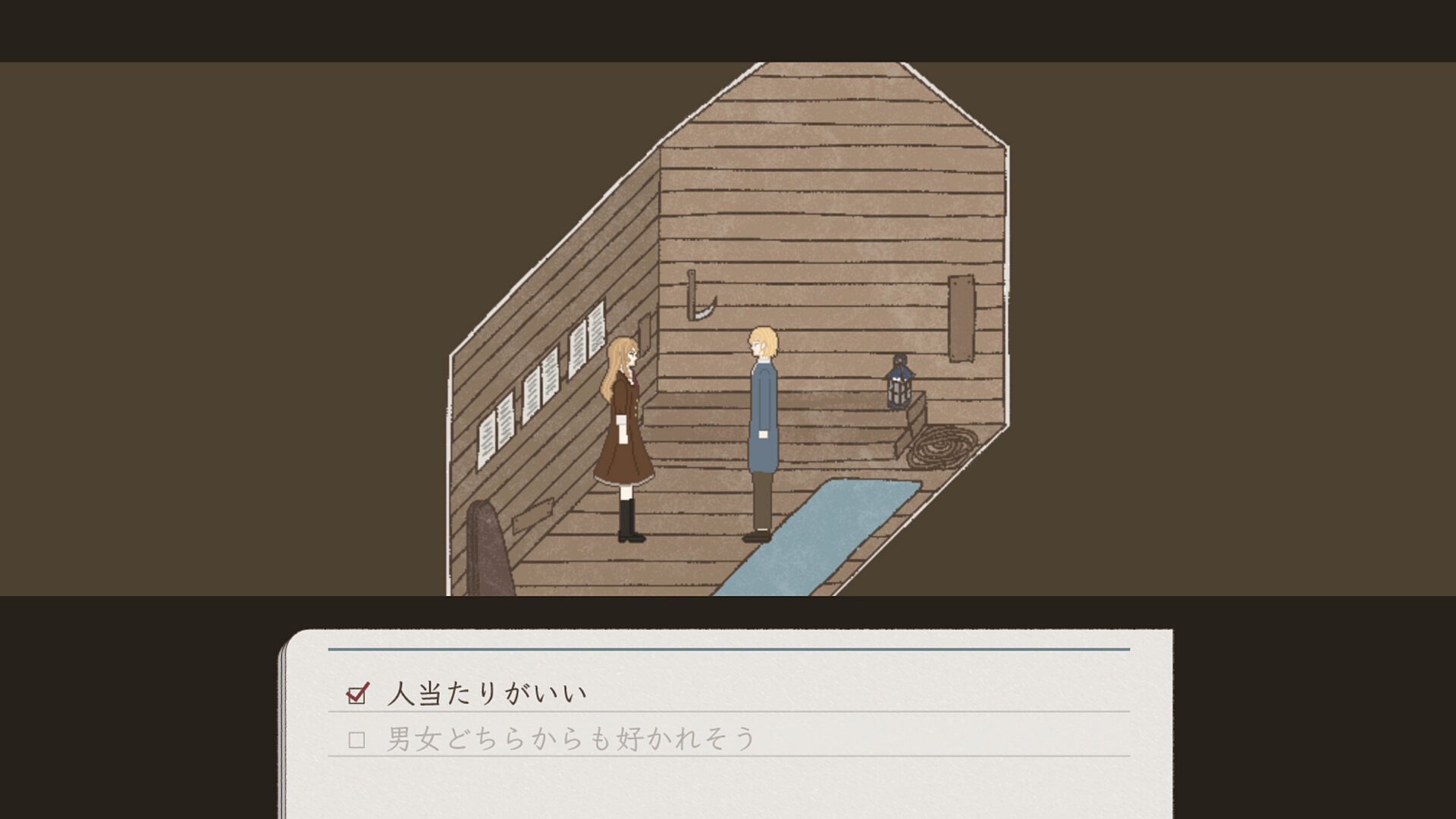 This trust level is determined by the cumulative total of the values set in the choices, and the ending of the story changes according to this value.