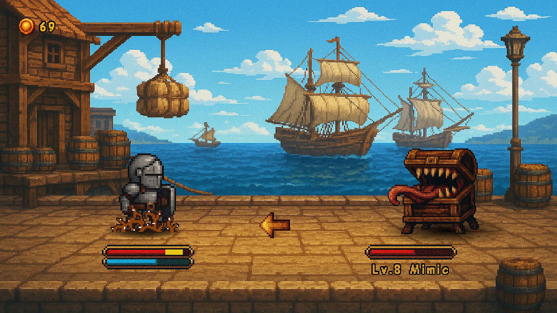 Inspired by JRPG-style 1-on-1 battles, Peglin-like progression and the reaction-based combat of Timing Hero with improved gameplay and pixel graphics.