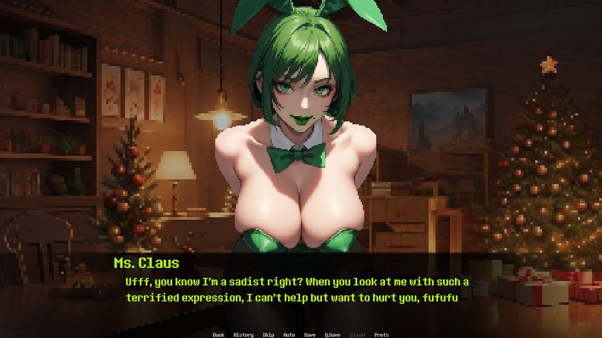 On the North Pole, there's a secret civilization of Santa's helpers that produce presents for humans around the world. The overseer, Ms. Clause notices that your productivity has dropped recently and decides to punish you in her own cruel, sensual, sadistic way. Will your heart be able to endure her sensual methods?