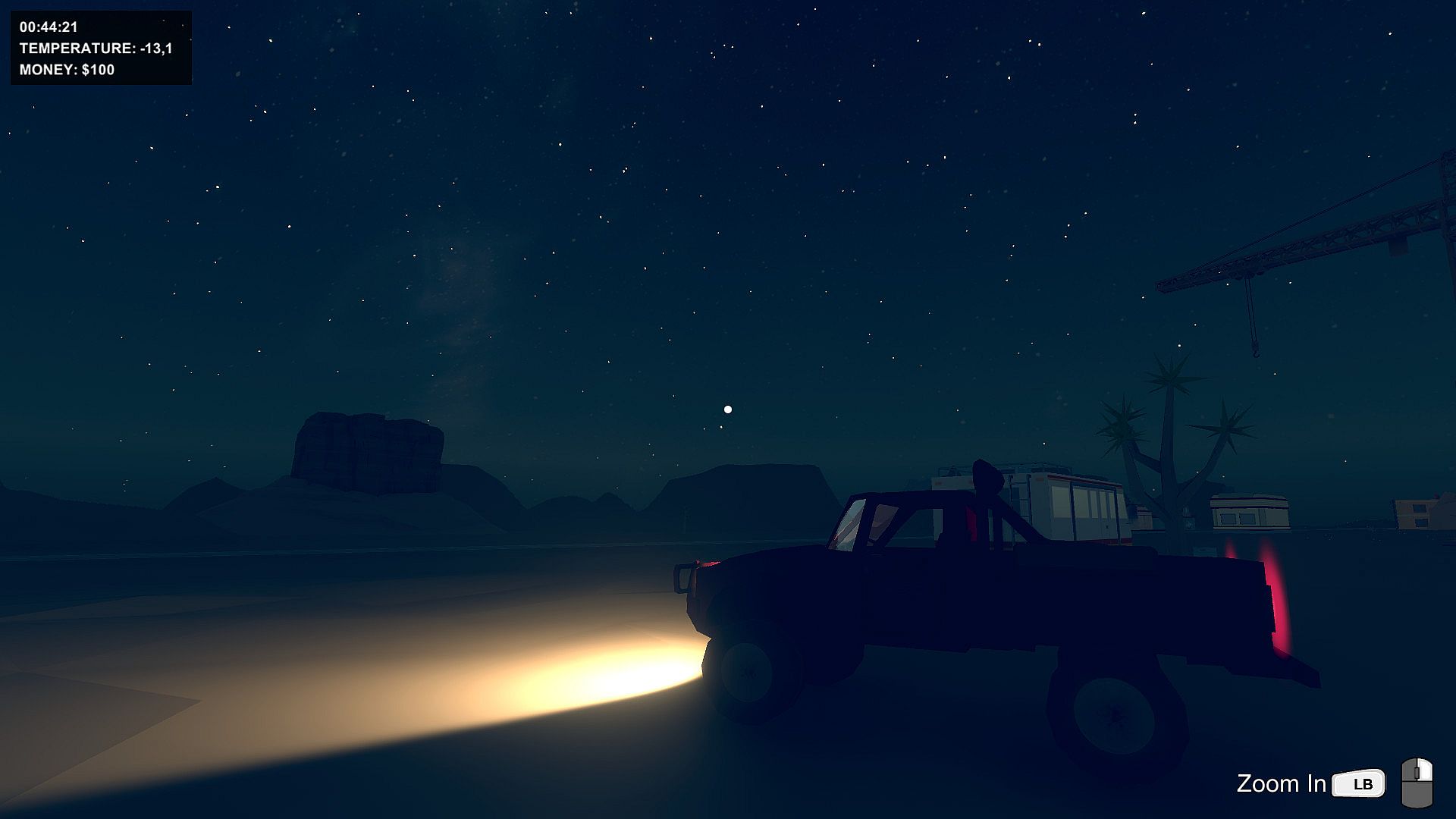 Alternate reality, year unknown. The climate had gone crazy, lack of rainfall had turned the whole world into a huge desert. Even weirder… Nights are extremely frosty. Because of the variable and aggressive climate, it is getting harder to find food and water. Weather forecasters predict that soon an endless winter may come. Go on an adventure of a lifetime in your old pickup truck. Remember to bring plenty of fuel, food, and drinks.