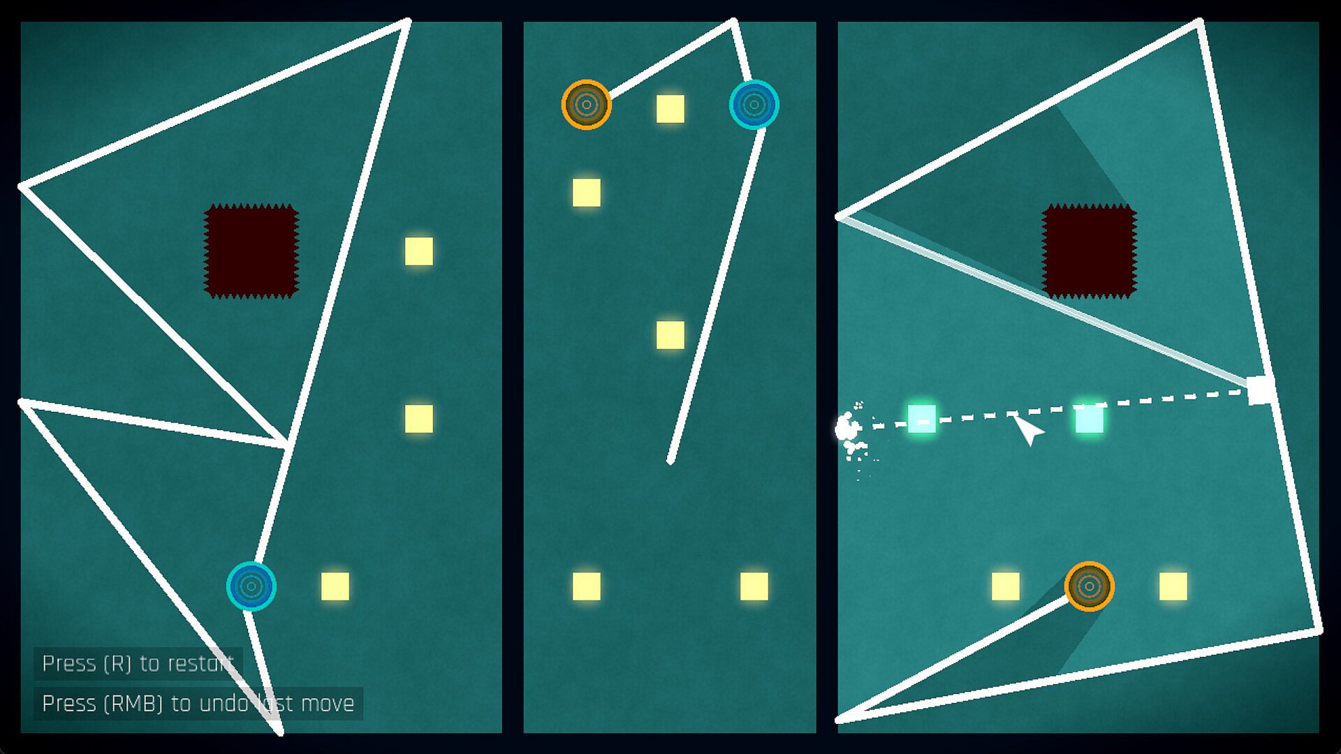 • 50 hand-crafted levels full of dashing, dying, reflecting and teleporting