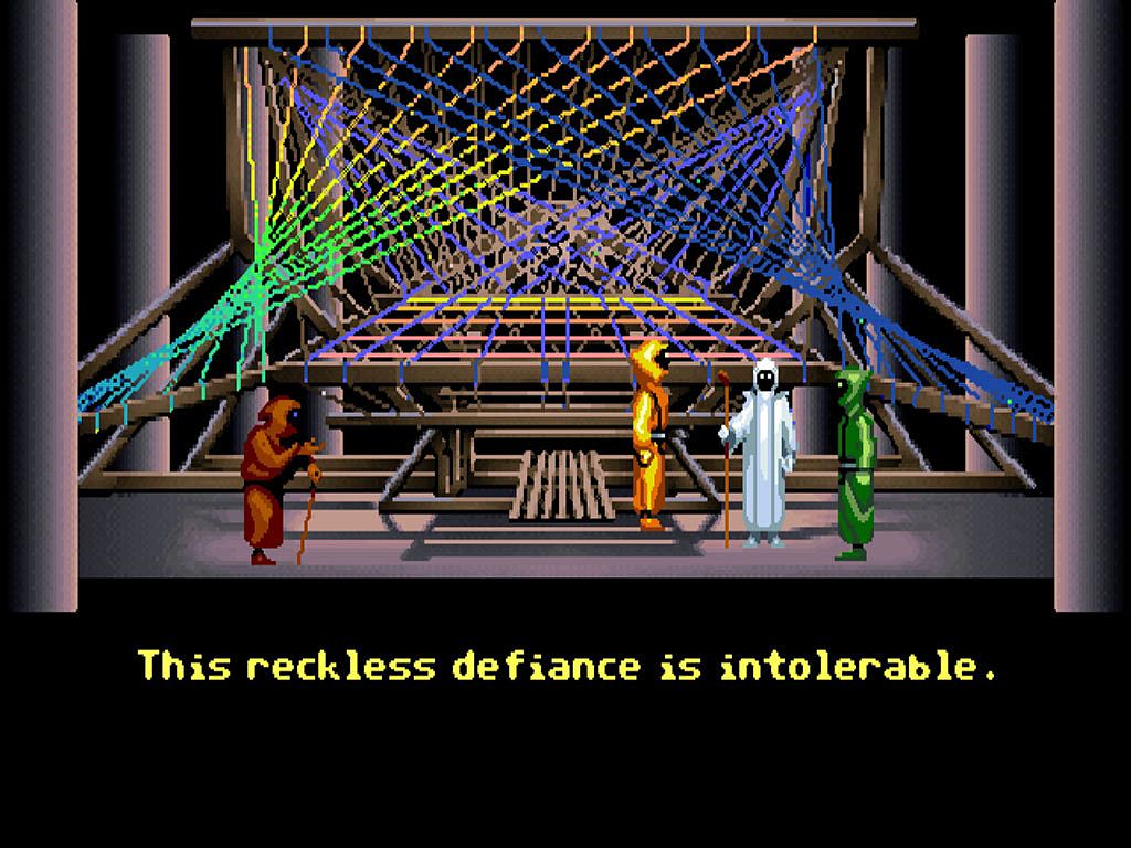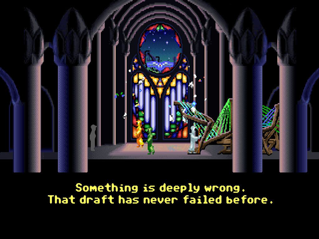 Another such Guild was the Weavers. Over the centuries, their craft transcended the limits of physical cloth, until they wove the very fabric of reality itself. Now, a strange power has swept the Weavers into oblivion, leaving behind one Weaver boy to unravel the mystery. Help young Bobbin rescue his Guild...and you just might save the universe from an unspeakable catastrophe.