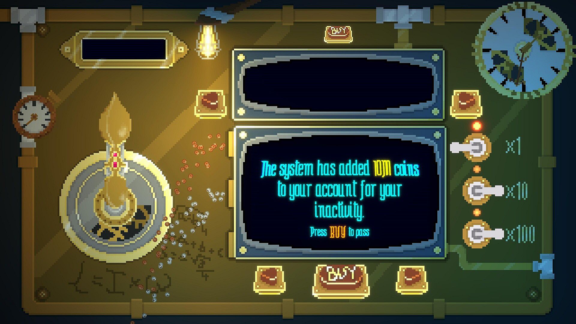 • Upgradeable auto-clicker. Let the machine do the work (until it overheats).