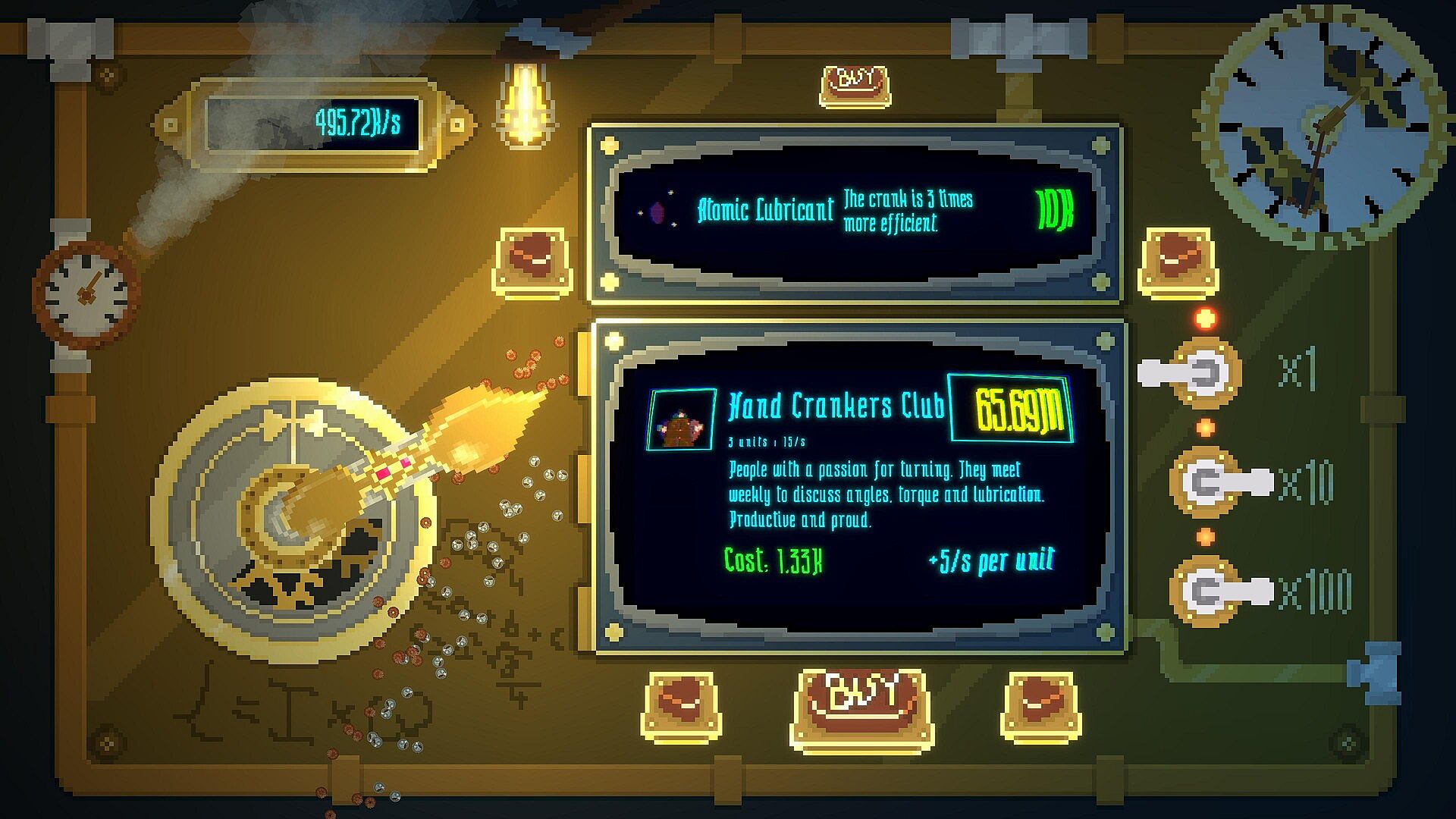 Turn the crank to generate money. The more you generate, the more upgrades you can buy... and the more you'll turn. An endless cycle of rotation and progress.