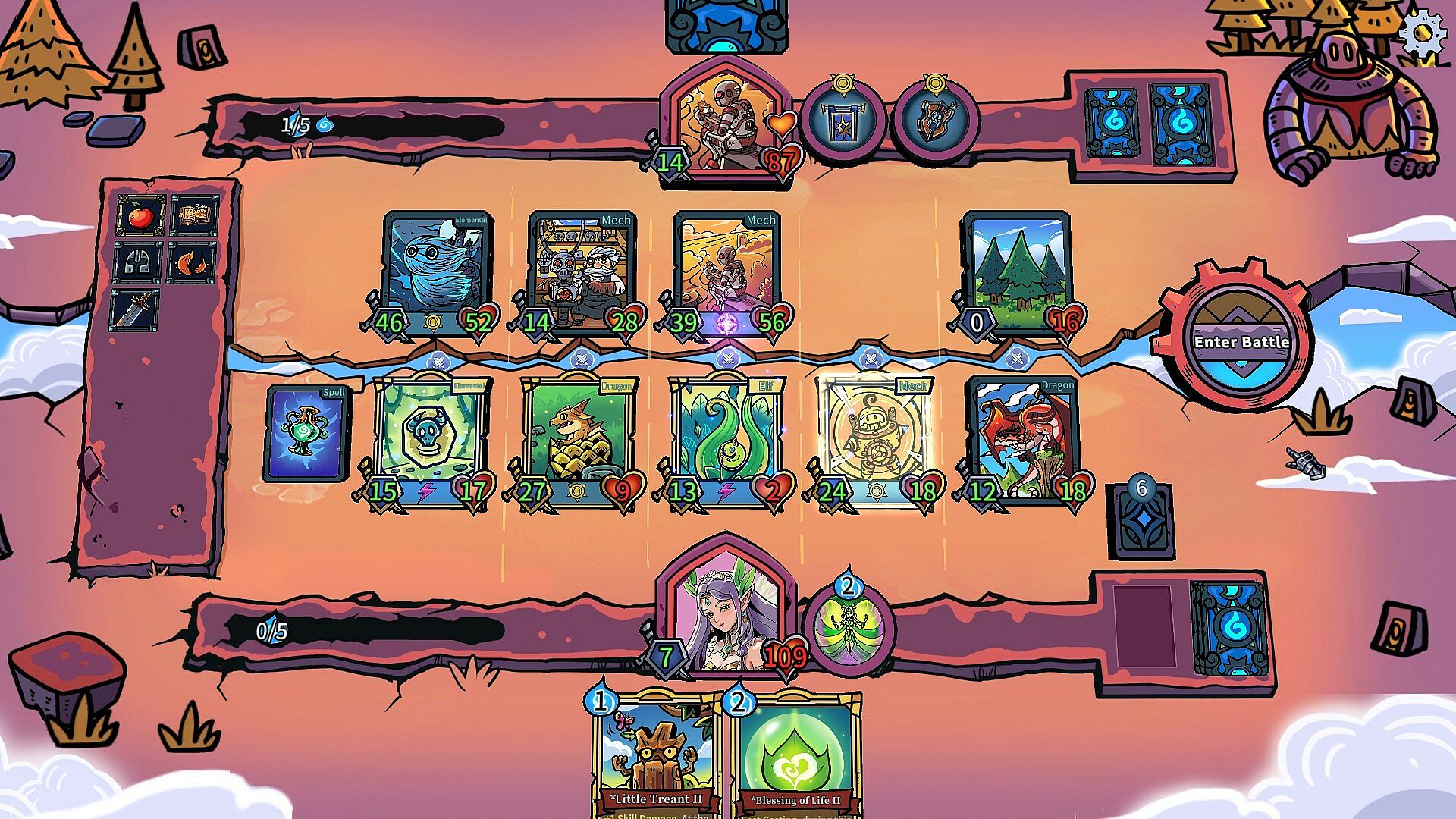 As a deck-building card game, Looper Tactics gameplay is inspired by Hearthstone, Artifact, and Hearthstone Battlegrounds’ mechanics, all while adding strategic and roguelite elements. In the game, you collect resources through battles, events, and treasure hunts, strengthening your deck in preparation for the ultimate boss challenge.