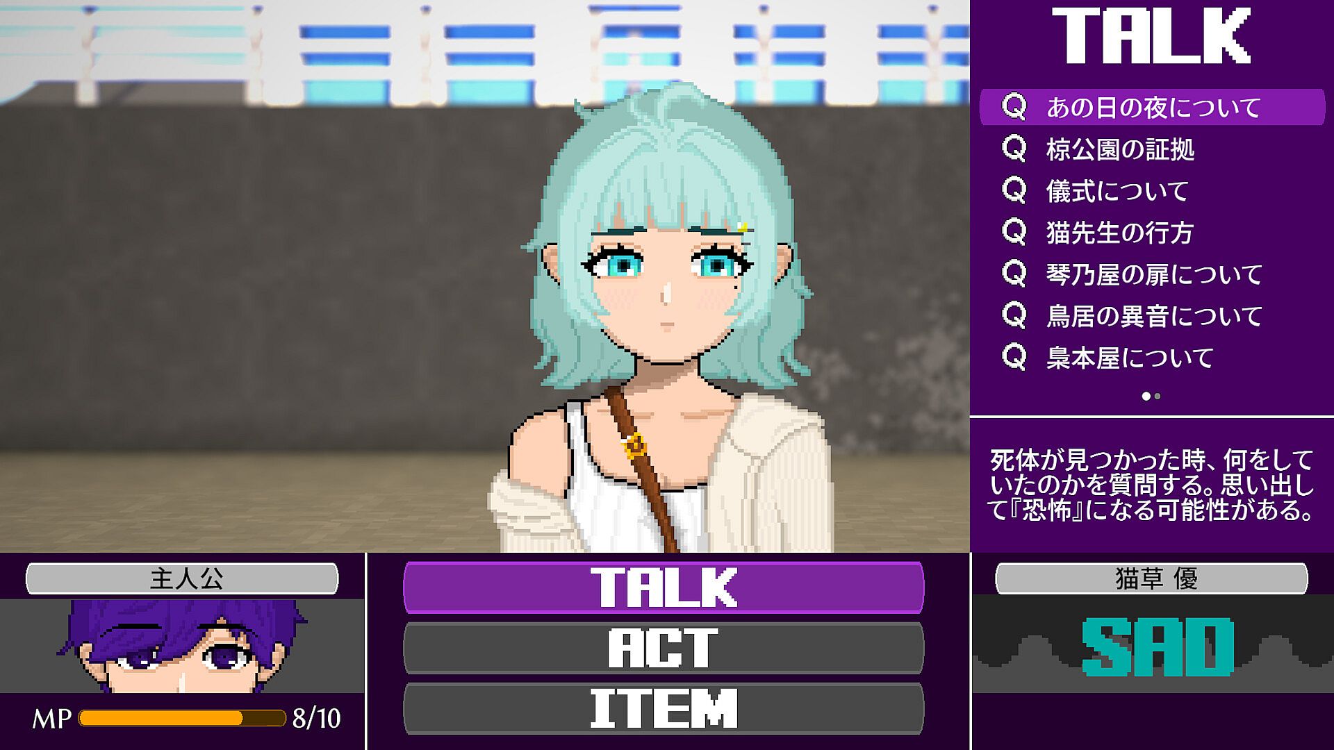 Managing MP is essential, so using items or performing "Deep Breathing" to stay calm can be critical.