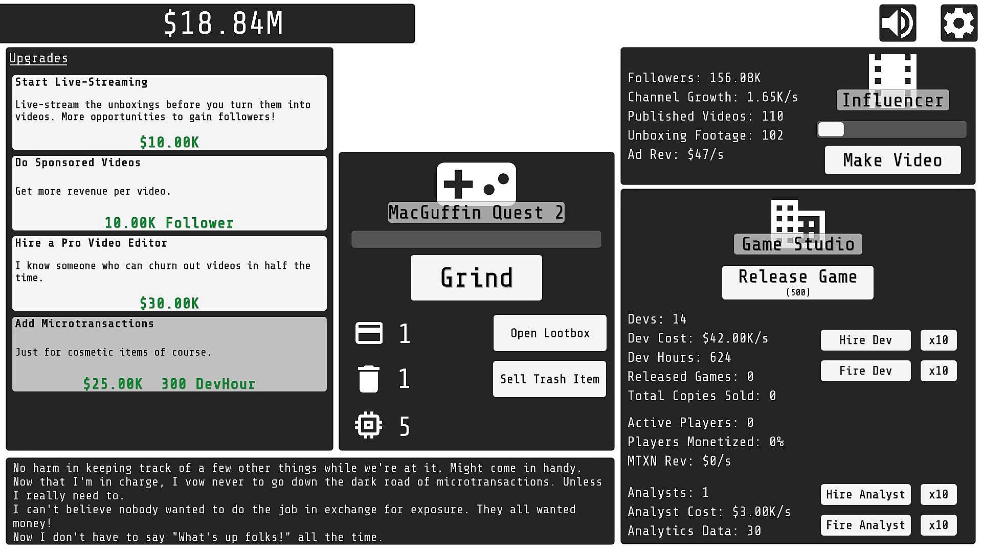 - Lots of clicking. But not, like, too much clicking. You can get upgrades that automate things.