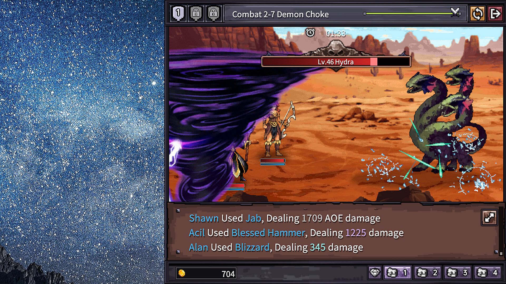"Loot of Baal" is an idle game nestled right on your screen's sidebar. Multitask your way to glory by sending your hireling crew out to explore, fight demons, and collect loot while you focus on other things! With hundreds of uniquely skilled hirelings, over 1000 distinct items, and a wealth of randomized battle stages, there’s always something to discover. Craft items and upgrade them to Immortal levels, and trade items online with other players to create the perfect team of heroes.