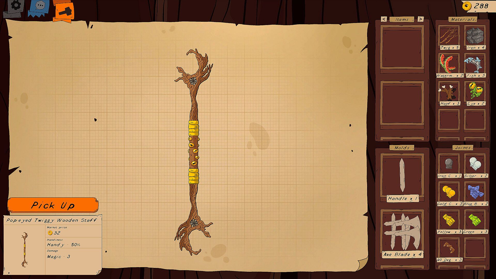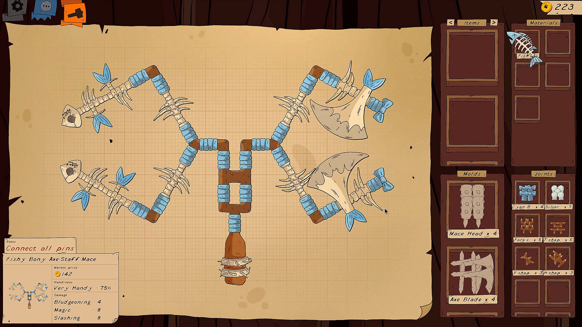 Metal, wood, bones, monster parts and many more — each one changes how your creation looks and performs. Mix and match to discover strange combos and powerful effects.