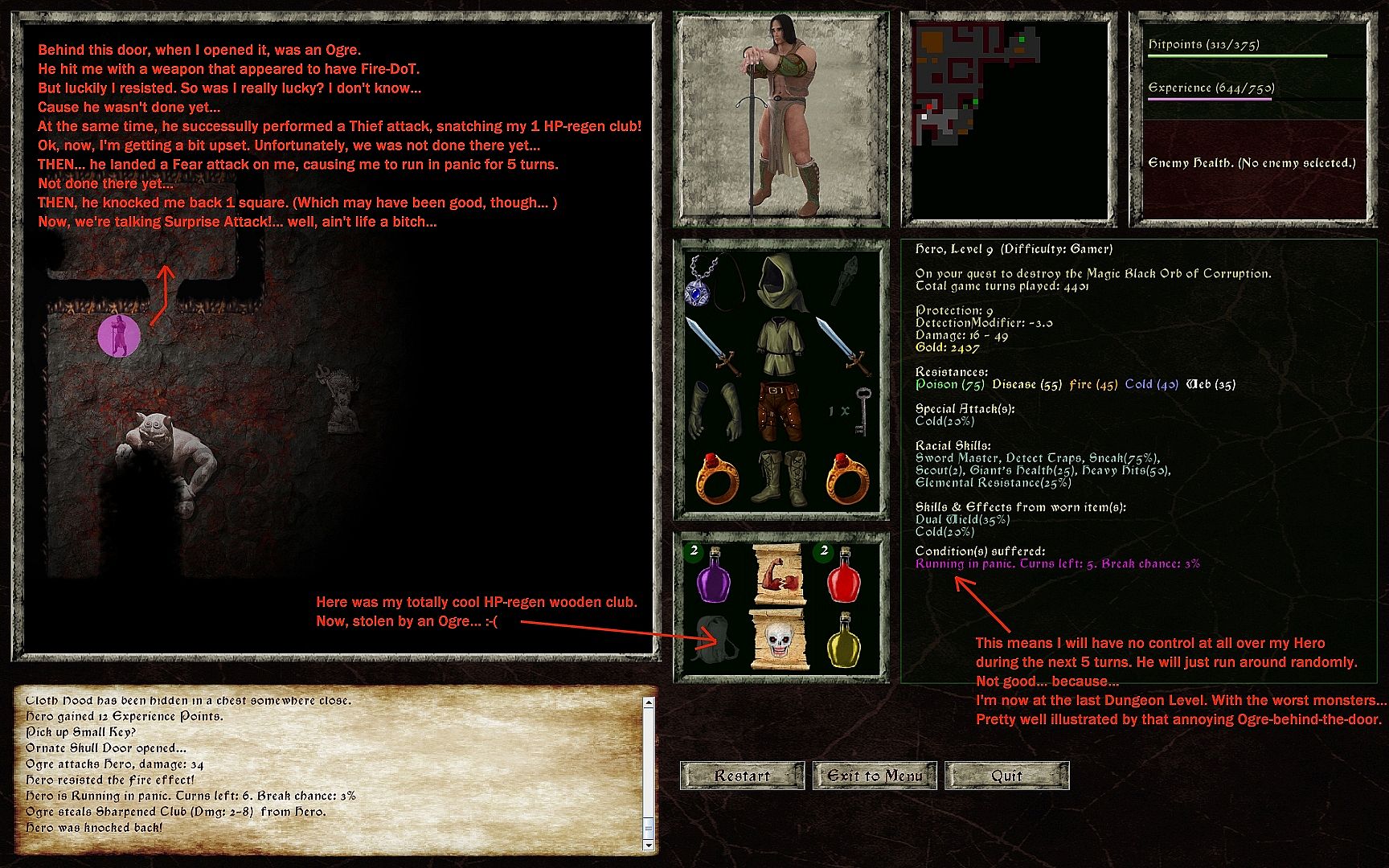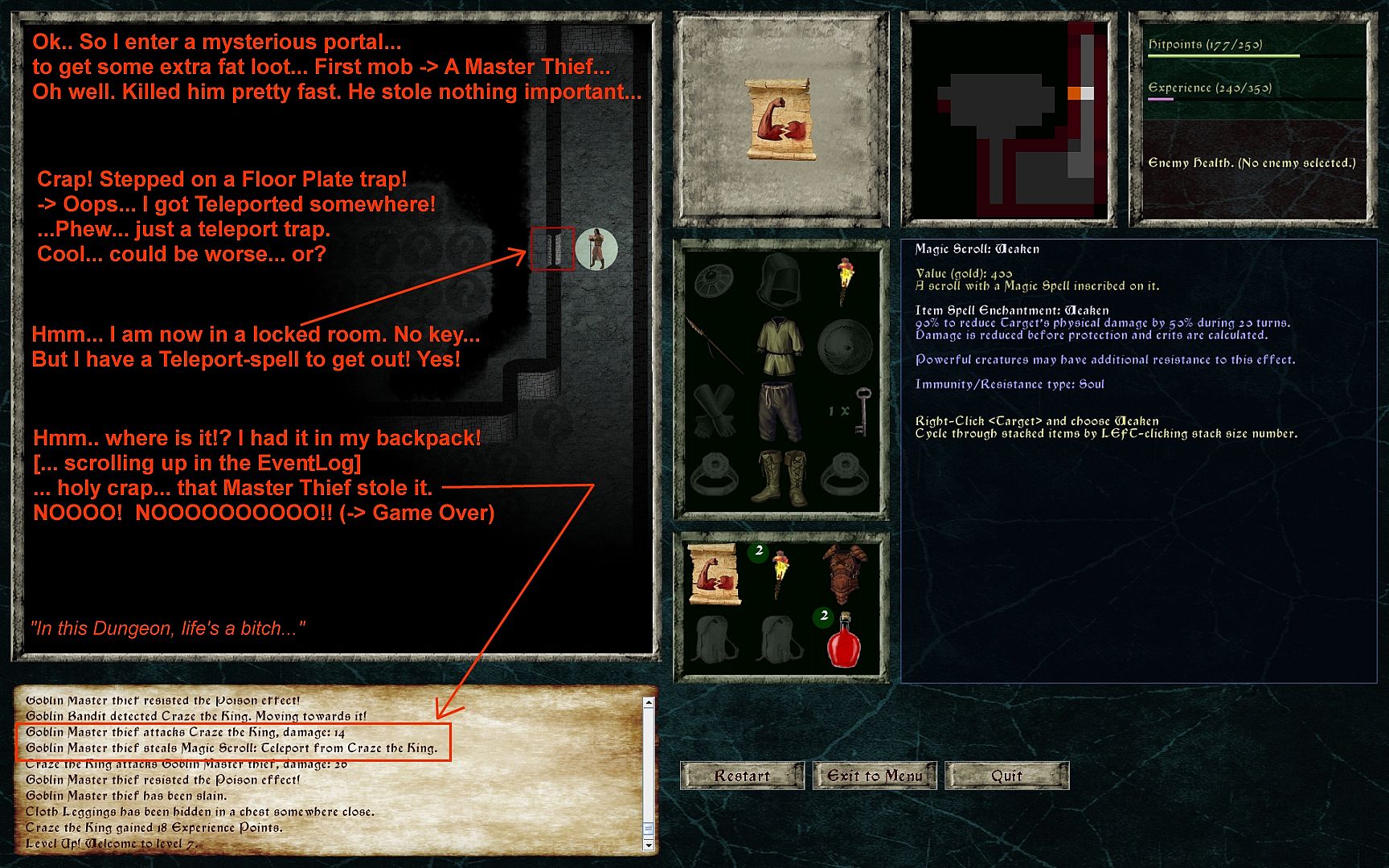 - In this game, the monsters are alive: they loot items, use EXACTLY the same armor, weapons and spells as the Hero. Monsters that have gold even go into the shops and buy gear before your Hero gets the chance!