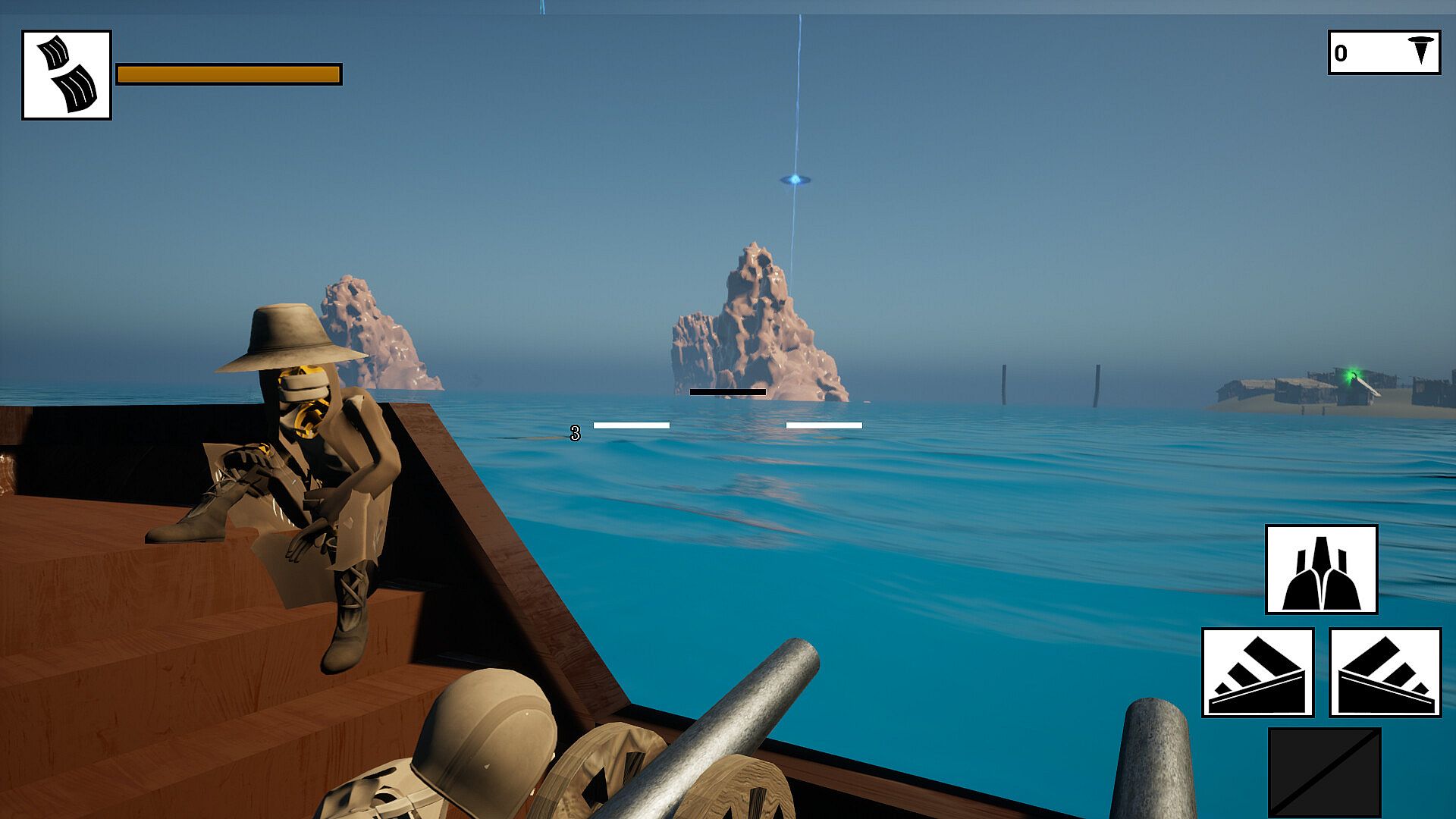 • Build up to Bigger Boats: As you explore the world, you'll come across formidable naval installations built into the land and sea. Demolishing these forts will afford you access to larger classes of boat, with more guns and greater durability at the cost of inferior maneuverability. Fight your way through the naval ranks from the modest sloop to the massive man-o'-war!