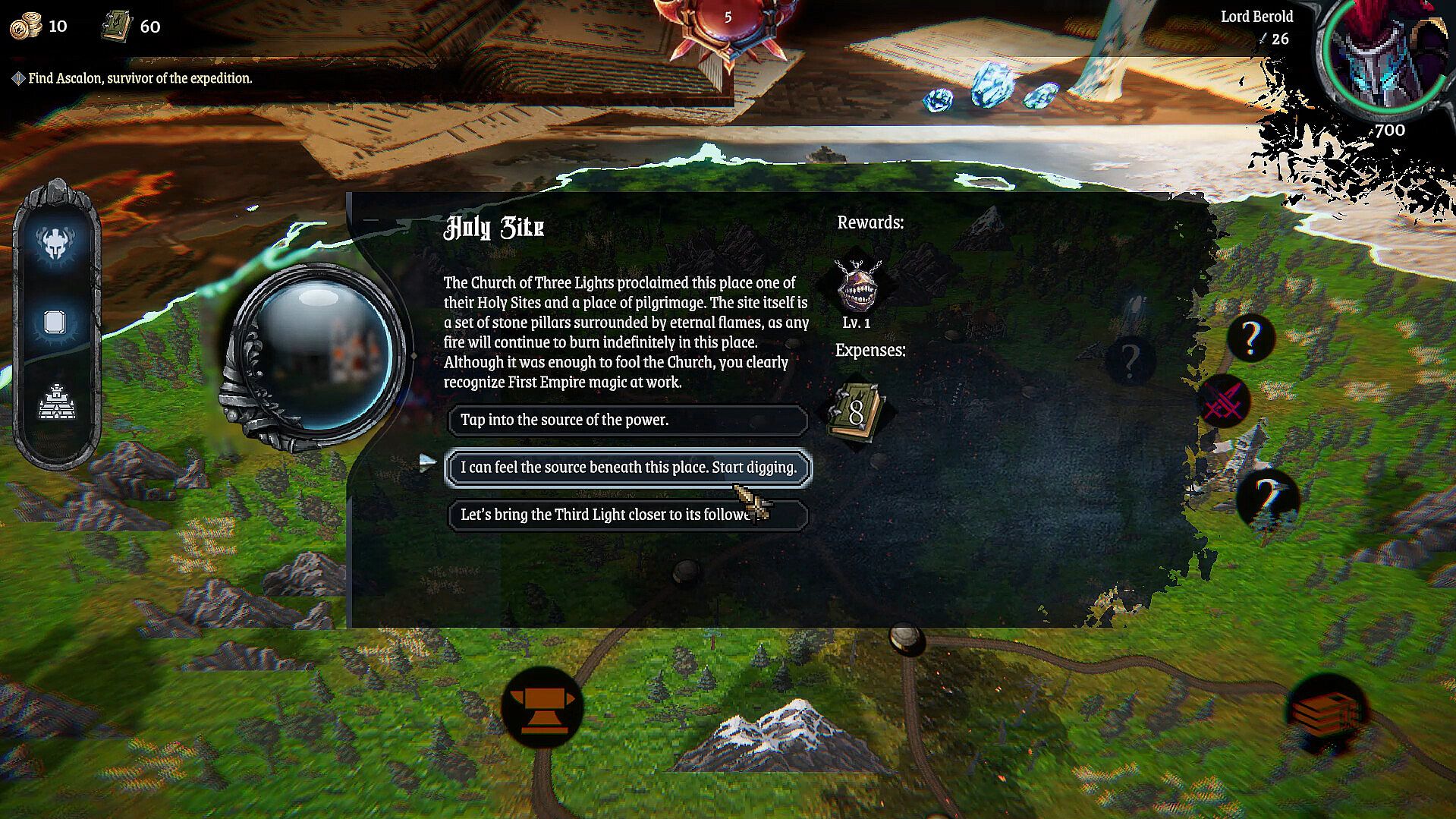 To build up your power, you must replenish your treasury and acquire new magic powers. Raze and pillage enemy lands, and take their gold for yourself. Use that wealth to upgrade your warriors’ stats, or hire more of them. Gather your might by absorbing power from sources of magic, and discover the secret knowledge of Orders to aid your warriors in battle or stagger your enemies with curses.