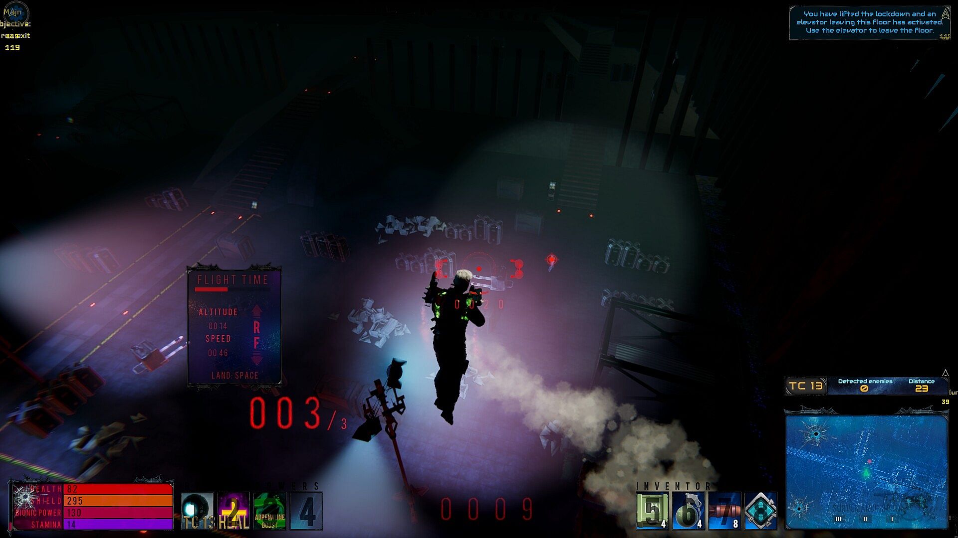 The jetpack enables you to fly short distances and access areas impossible to reach on foot.