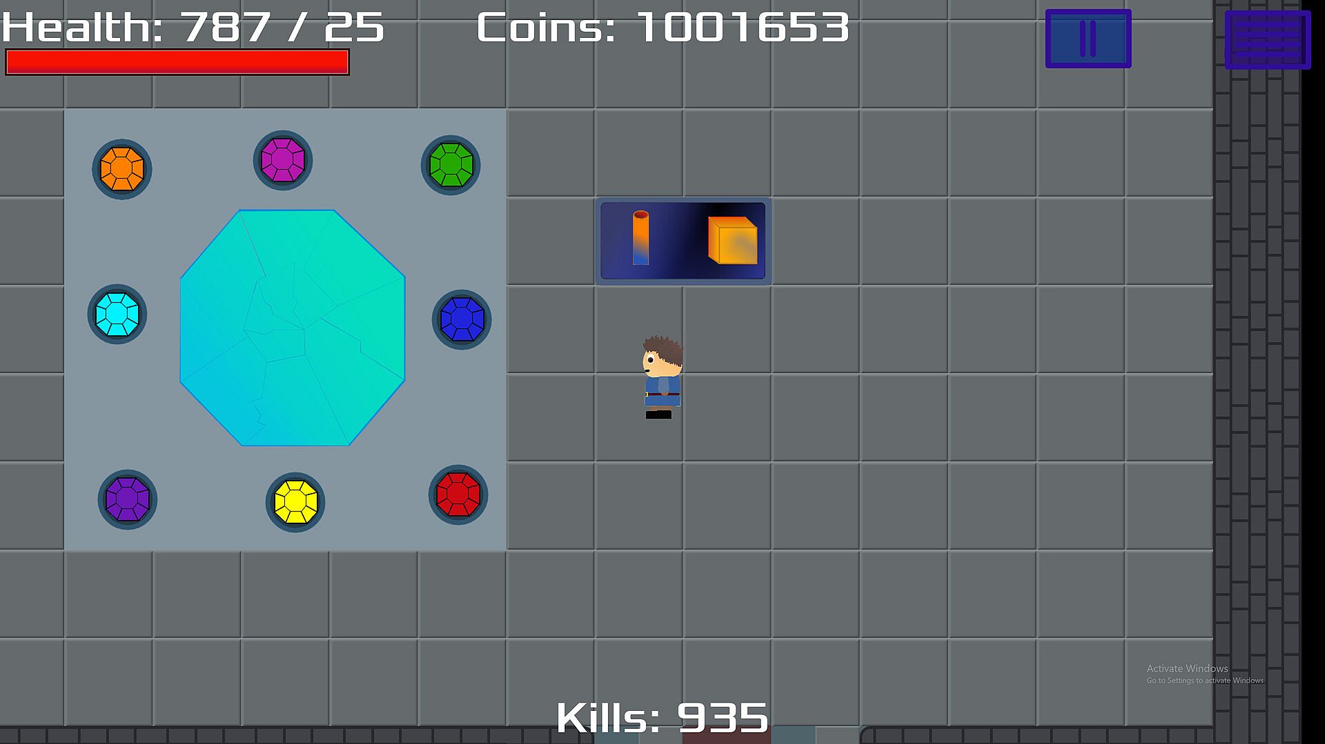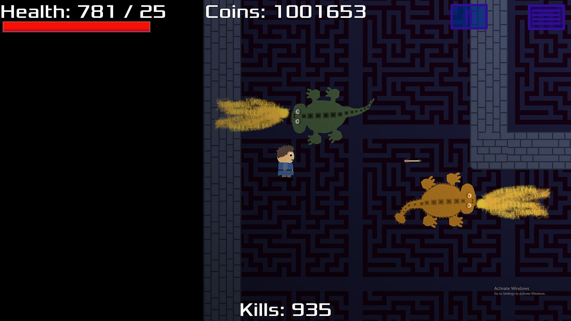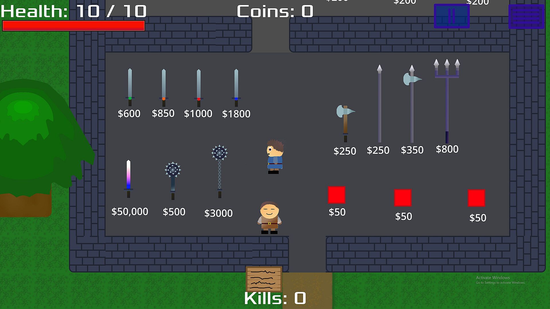 This is a 2D, top down, adventure game.  The gameplay consists of exploring and fighting monsters.   It also includes quests and item upgrades.   Upgrades can be purchased in a shop and meant to have fun mechanics as well as giving the player the ability to deal more damage.
